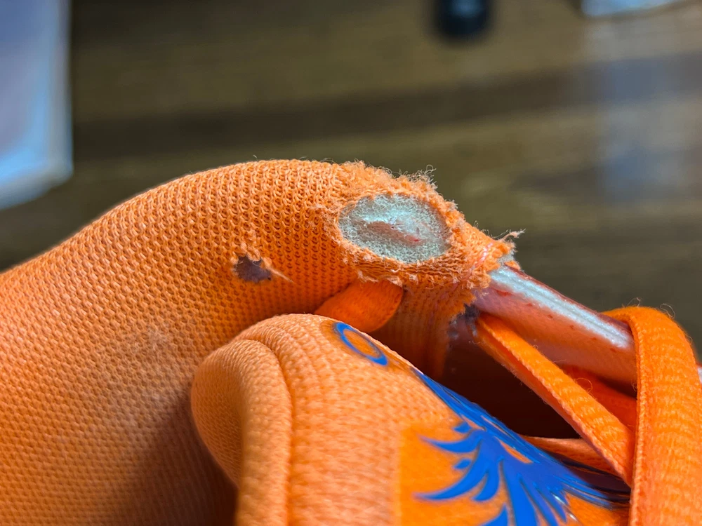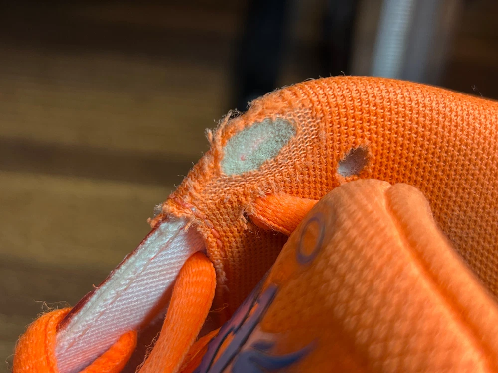 Hidden when worn, are two small wear spots on the inside of the collar of each shoe ~ See the last 5 pictures RARE Puma MELO MB.02 Supernova Fiery Coal/Orange Basketball 377403-01 Men sz 6.5...