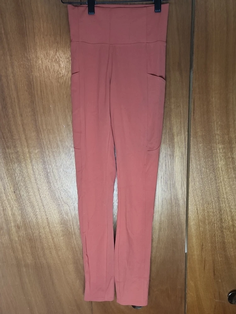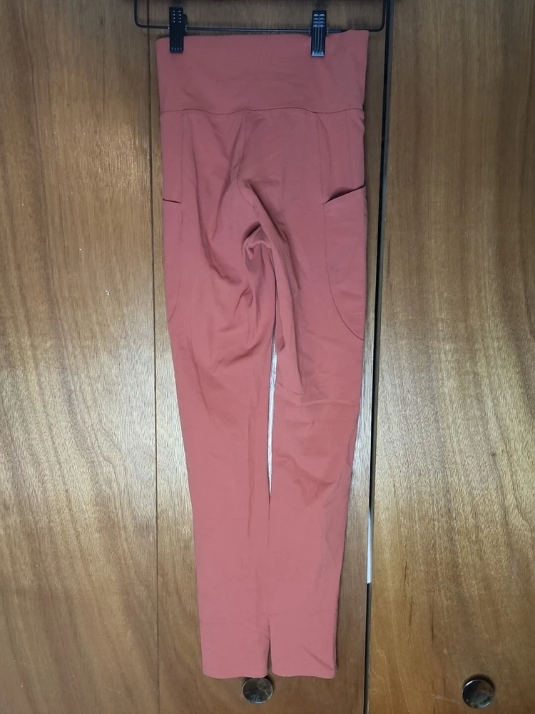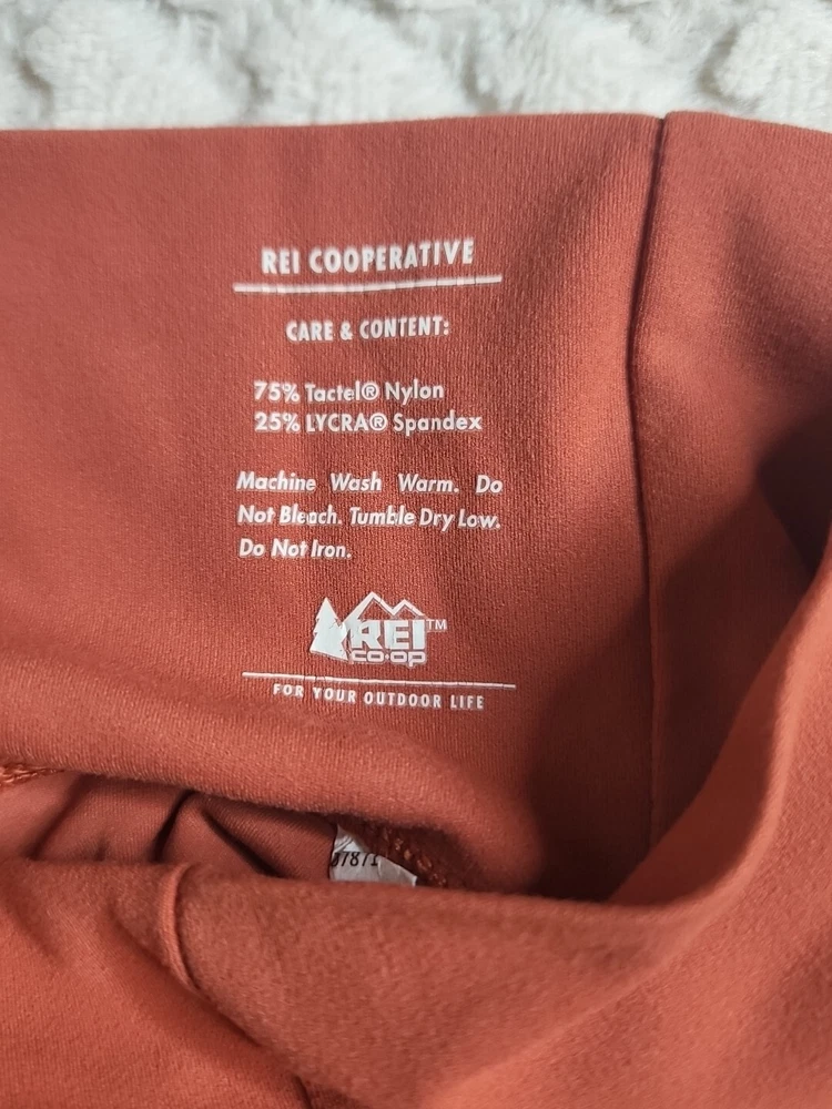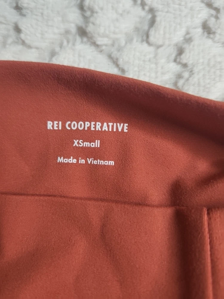 The REI Women's Orange Leggings in size XS are designed for casual comfort during workouts, yoga, and other athletic activities. Made from a blended fabric of polyester, these ankle-length leggings feature a mid-rise waist and a 26-inch inseam for a comfortable fit. The solid orange color with a logo accent adds a touch of style, while the fabric wash allows for easy maintenance. Perfect for outdoor activities, these REI leggings are a versatile addition to any active woman's wardrobe. Waist is 20 inches. Inseam is 26 inches. Length is 34 inches.