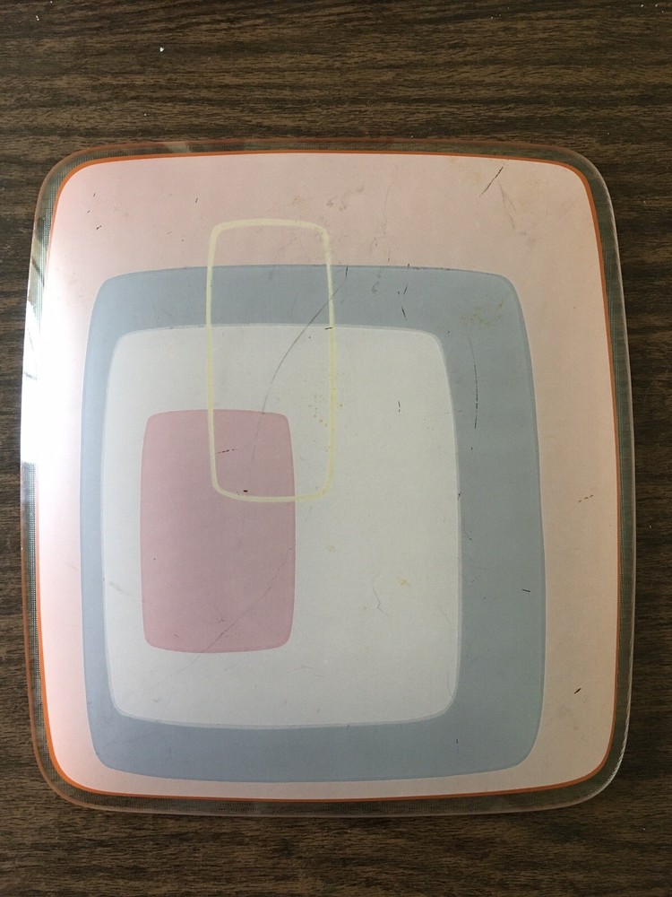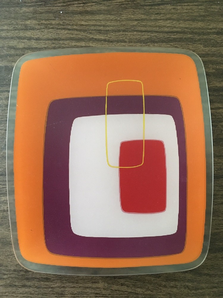 RETRO Orange & Red & Purple Rectangle Glass Plate. Texture surface. 10”x 11”. These are a few slight scratches on the backside. Otherwise nice condition.