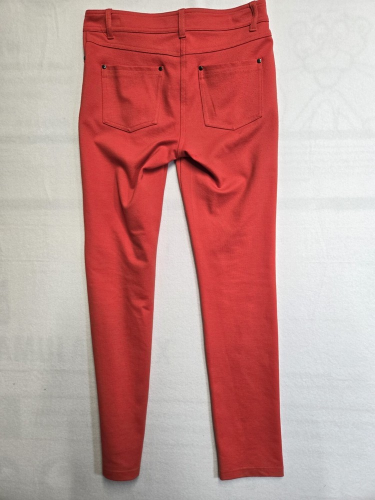 The ROMEO & JULIET Women's Red/Orange Knit Mid Rise Jeans in Medium are a stylish and comfortable choice for any season. Made from a blend of spandex and cotton, these jeans feature a solid color with a mid-rise fit and a classic 5-pocket design. The zipper and button closure adds practicality to these trendy skinny jeans, perfect for a bohemian-inspired look. Machine washable and offering stretch, these jeans are easy to care for and provide a flattering fit for a range of sizes.