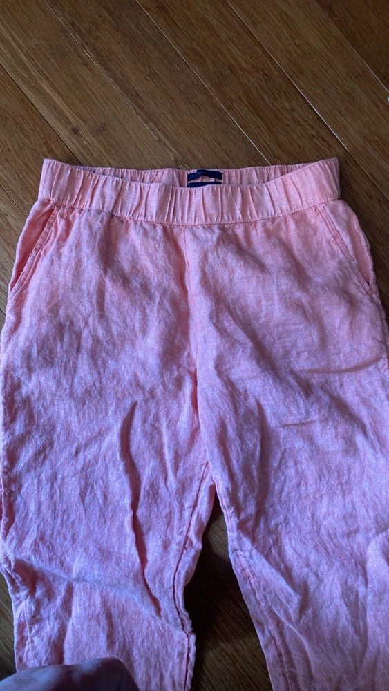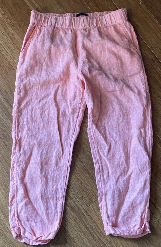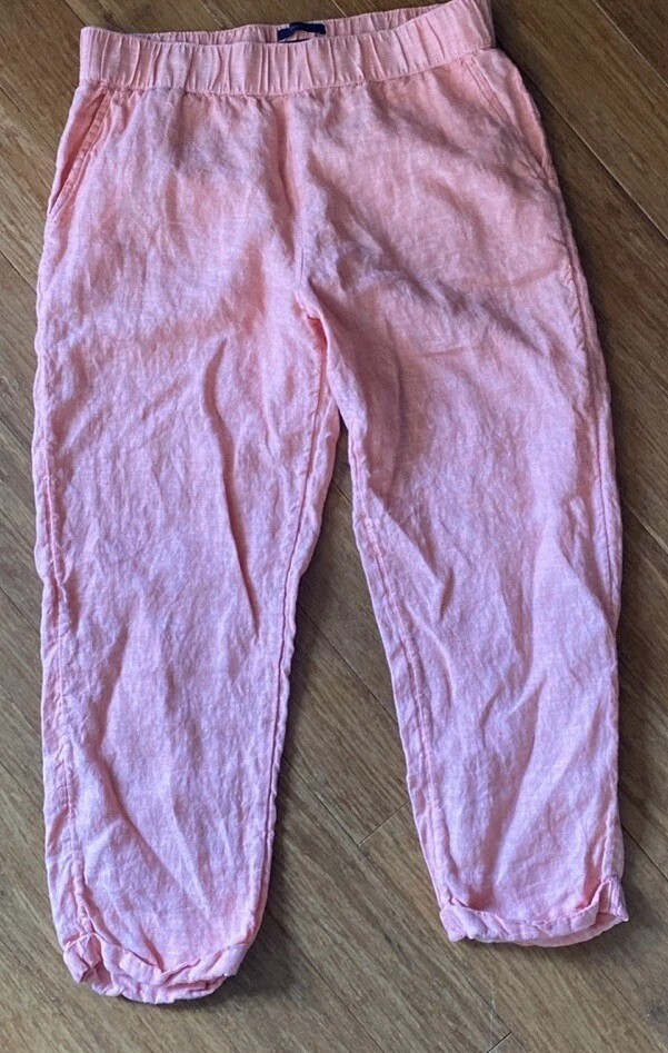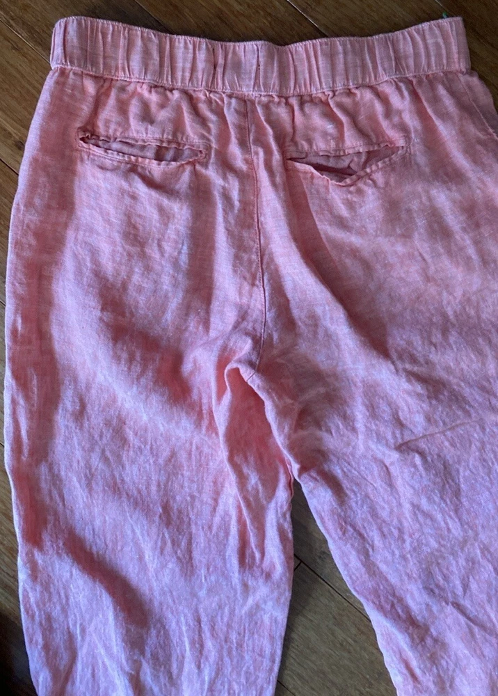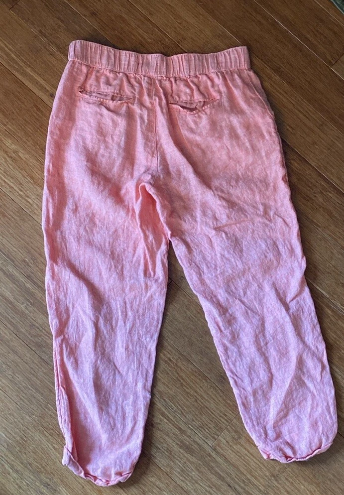 Elevate your wardrobe with these stylish Rachel Roy pull-on cropped pants in a gorgeous orange hue. Made of 100% linen, these mid-rise pants are breathable and comfortable, making them perfect for all seasons. The pants feature an elastic waist and straight leg style with a flat front for a sleek look. Ideal for travel or casual wear, these pants also have pockets for convenience. With a bohemian and festival theme, they are perfect for adding a touch of art and beach vibes to your outfit. These pants are a must-have for any fashion-conscious woman looking for comfort and style. Like new