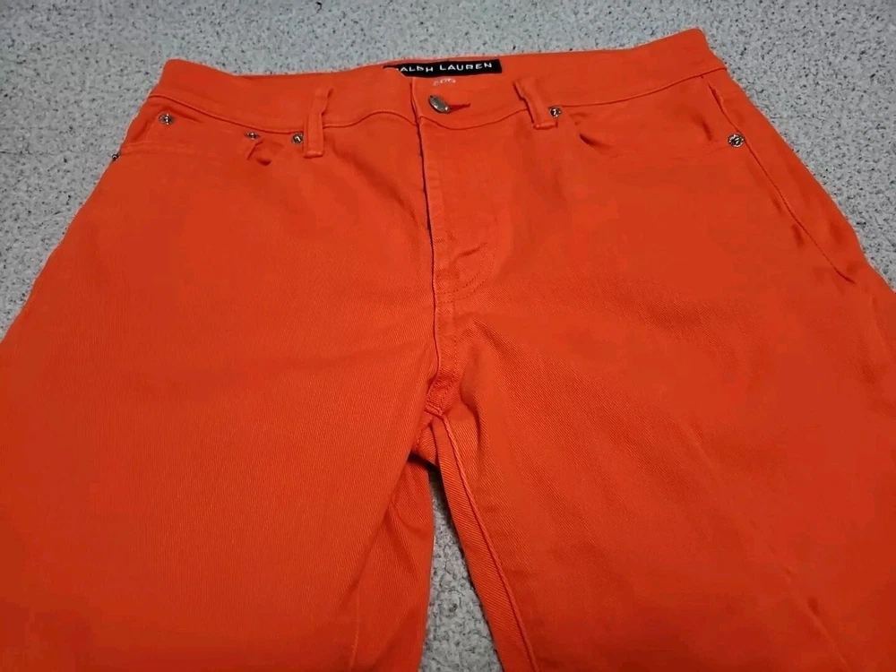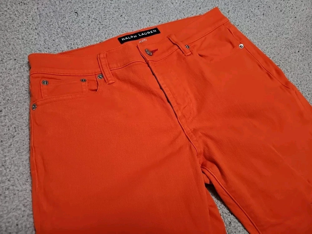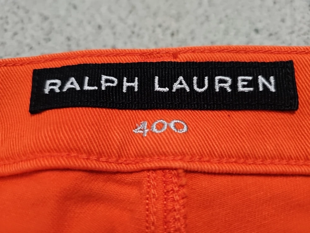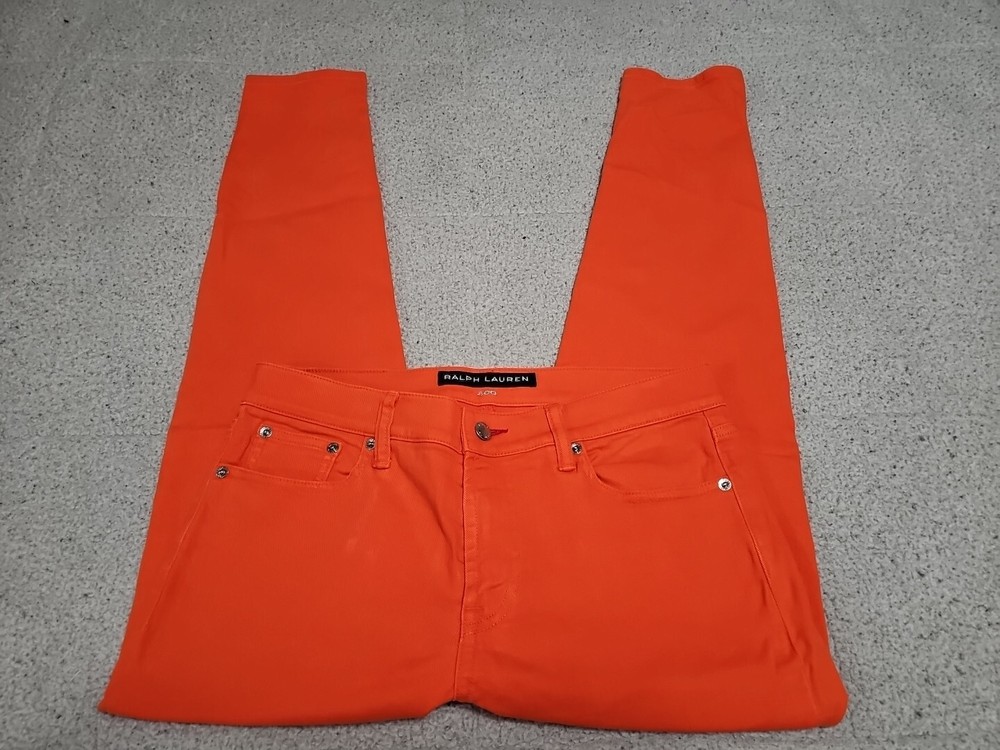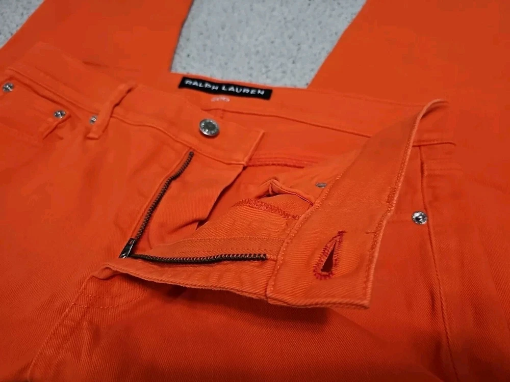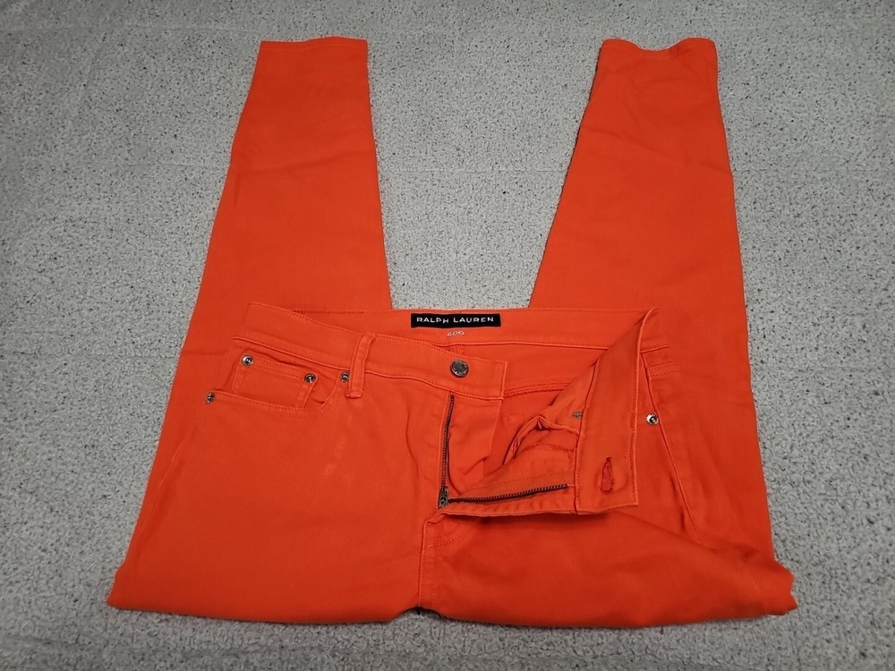 Elevate your denim collection with these Ralph Lauren Black Label 400 Skinny Ankle Orange Denim Jeans. The 5-pocket design and mid-rise fit make them a versatile addition to your wardrobe, while the zip and button closure ensures a secure fit. The easy care, comfort, and stretch features make them perfect for summer, fall, and spring. Crafted from 98% cotton and 2% spandex, these jeans are machine washable and have a waist size of 32 inches. The solid pattern and classic theme make them a timeless piece, while the ankle style and orange color add a pop of color to any outfit. Perfect for any occasion, these Ralph Lauren Black Label 400 Skinny Ankle Orange Denim Jeans are a must-have for any fashion-forward woman.