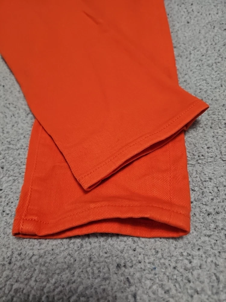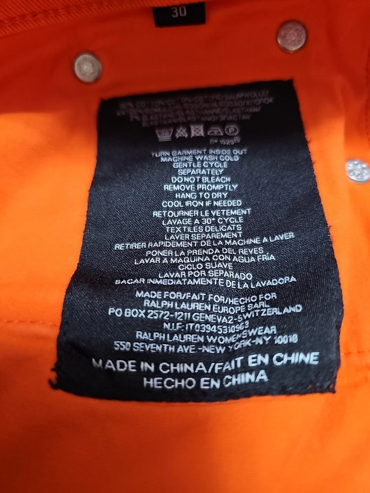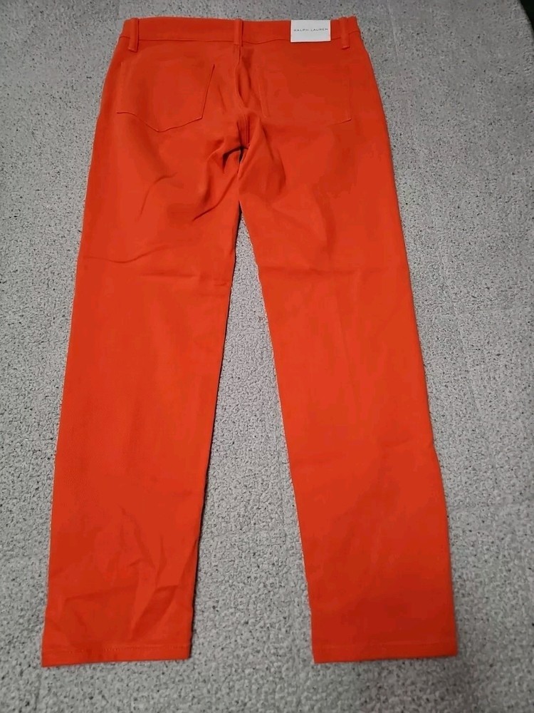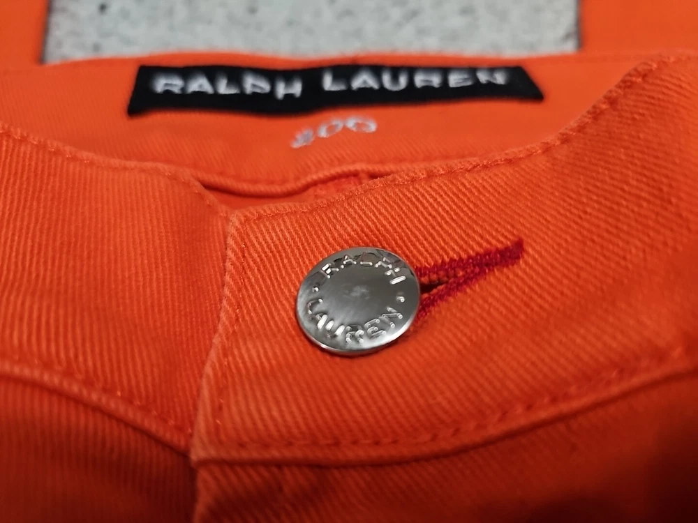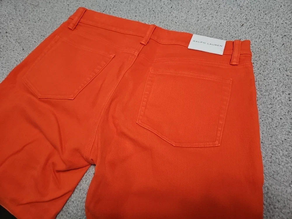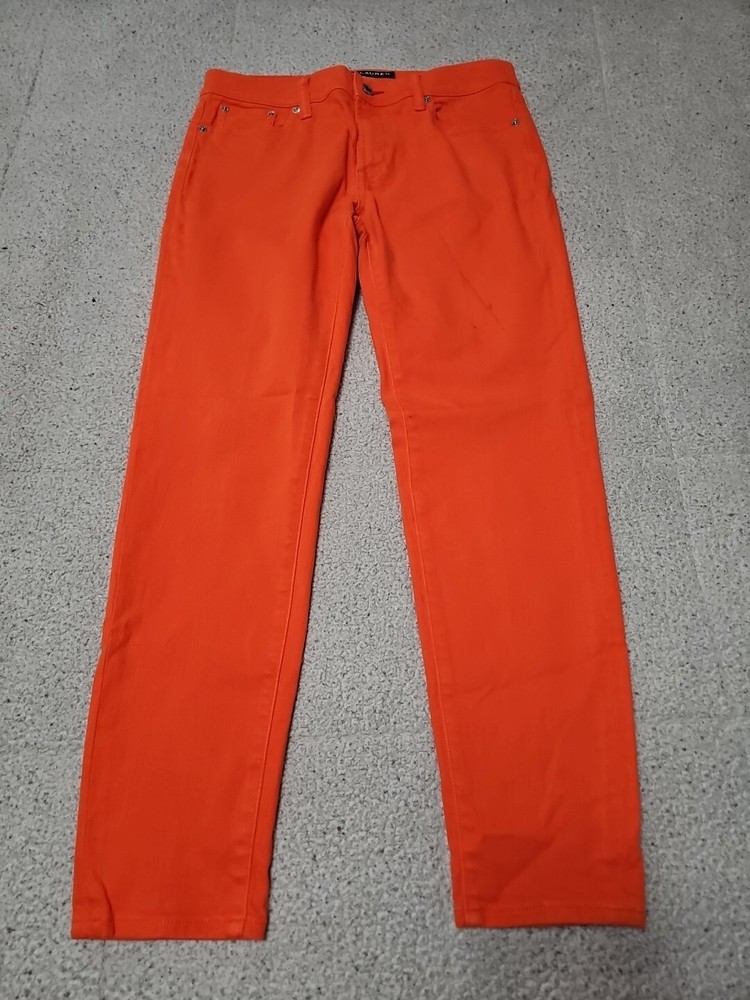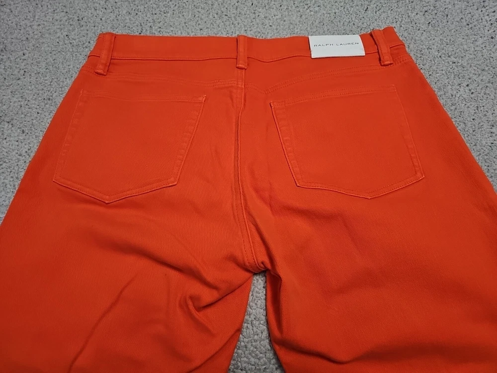 Elevate your denim collection with these Ralph Lauren Black Label 400 Skinny Ankle Orange Denim Jeans. The 5-pocket design and mid-rise fit make them a versatile addition to your wardrobe, while the zip and button closure ensures a secure fit. The easy care, comfort, and stretch features make them perfect for summer, fall, and spring. Crafted from 98% cotton and 2% spandex, these jeans are machine washable and have a waist size of 32 inches. The solid pattern and classic theme make them a timeless piece, while the ankle style and orange color add a pop of color to any outfit. Perfect for any occasion, these Ralph Lauren Black Label 400 Skinny Ankle Orange Denim Jeans are a must-have for any fashion-forward woman.