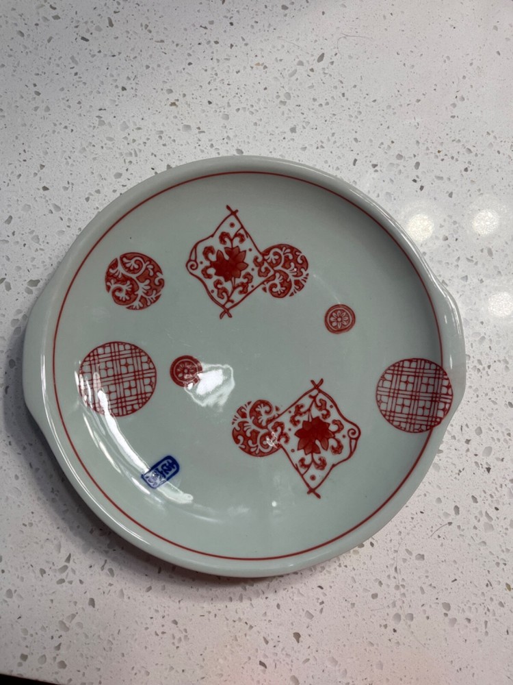 Rare Asian Style Creative Co-Op Decorative Plate- 9” diameter, red/blue accents. Microwave, dishwasher, and oven-safe.