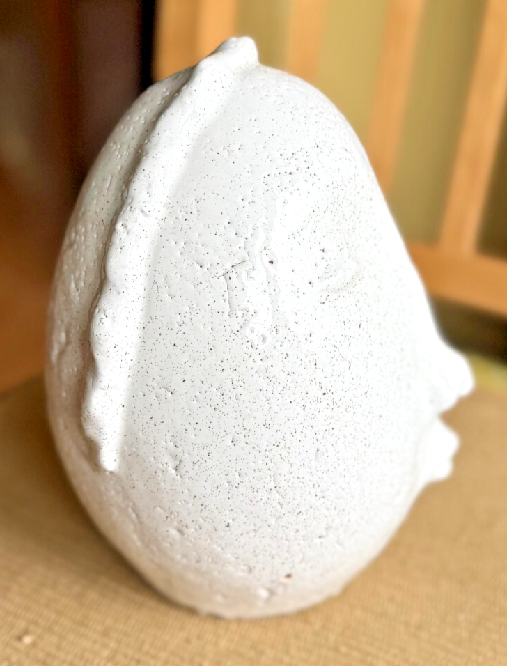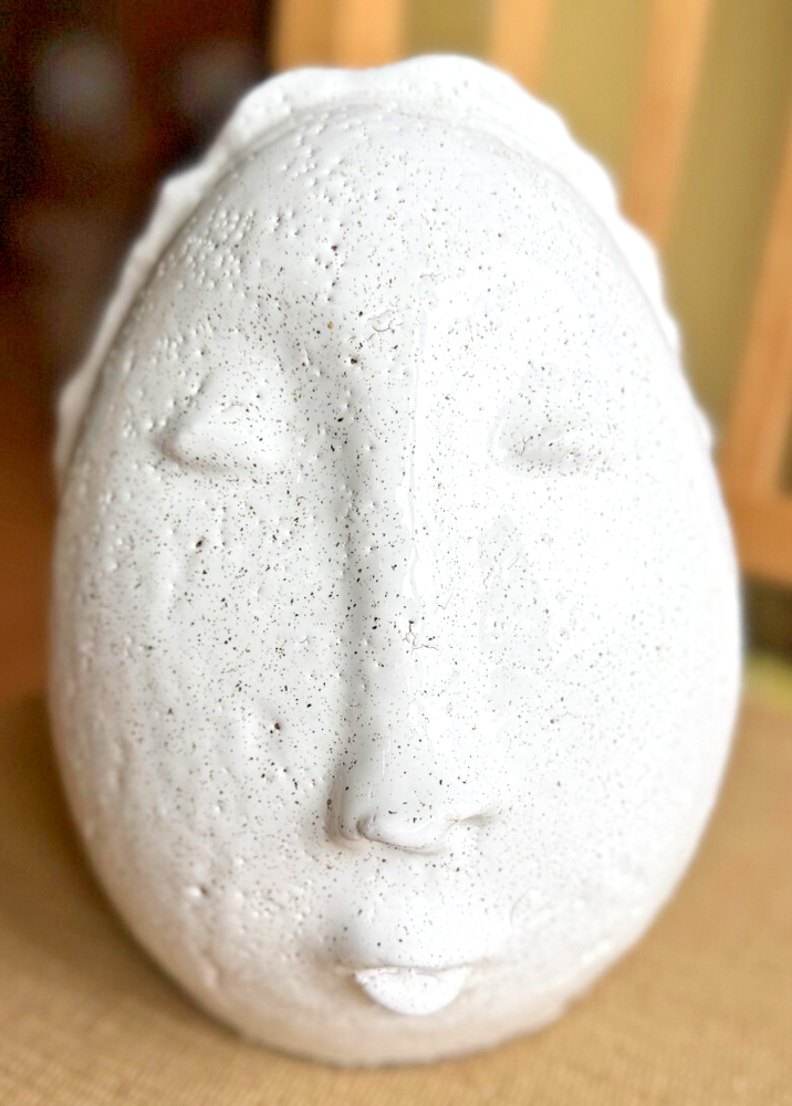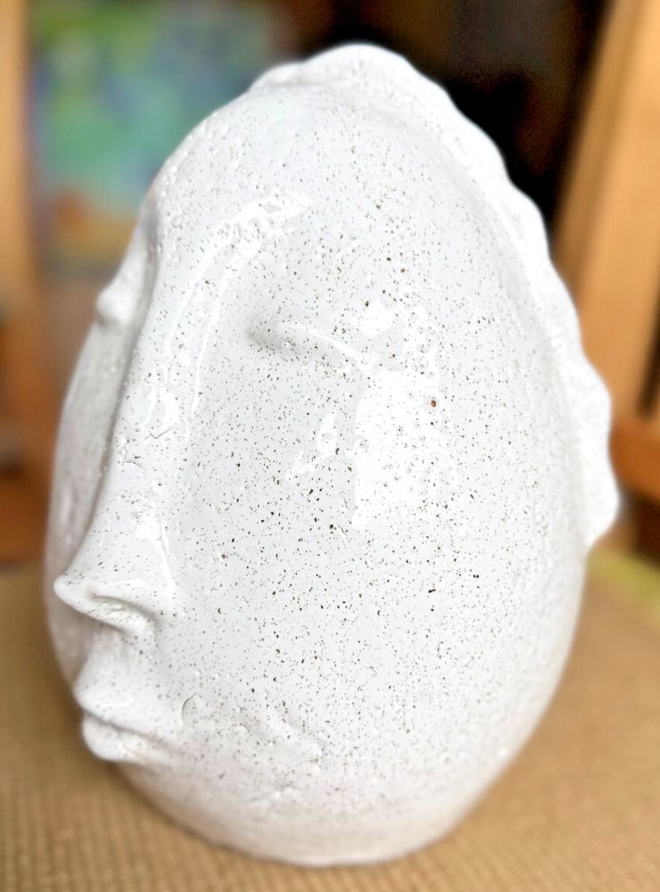The Terra Cotta Face with White Glaze by Creative Co-Op is a medium-sized clay sculpture featuring a unique Art Deco style. The white glaze gives it a modern and sleek look, making it suitable for any room in the home. With dimensions of 7 inches in length, 8.5 inches in height, and 6.5 inches in width, this head-shaped piece is perfect for adults and can be cleaned with a damp cloth for easy maintenance. The brand's creativity and attention to detail make this sculpture a standout piece for home décor.