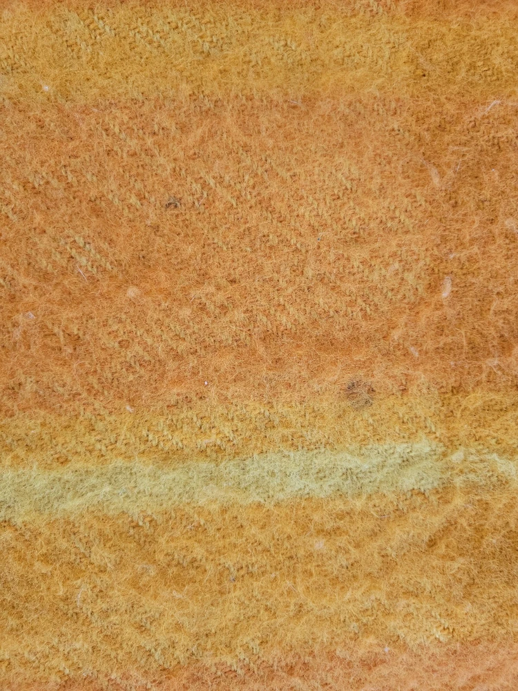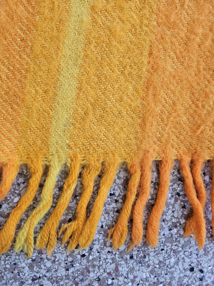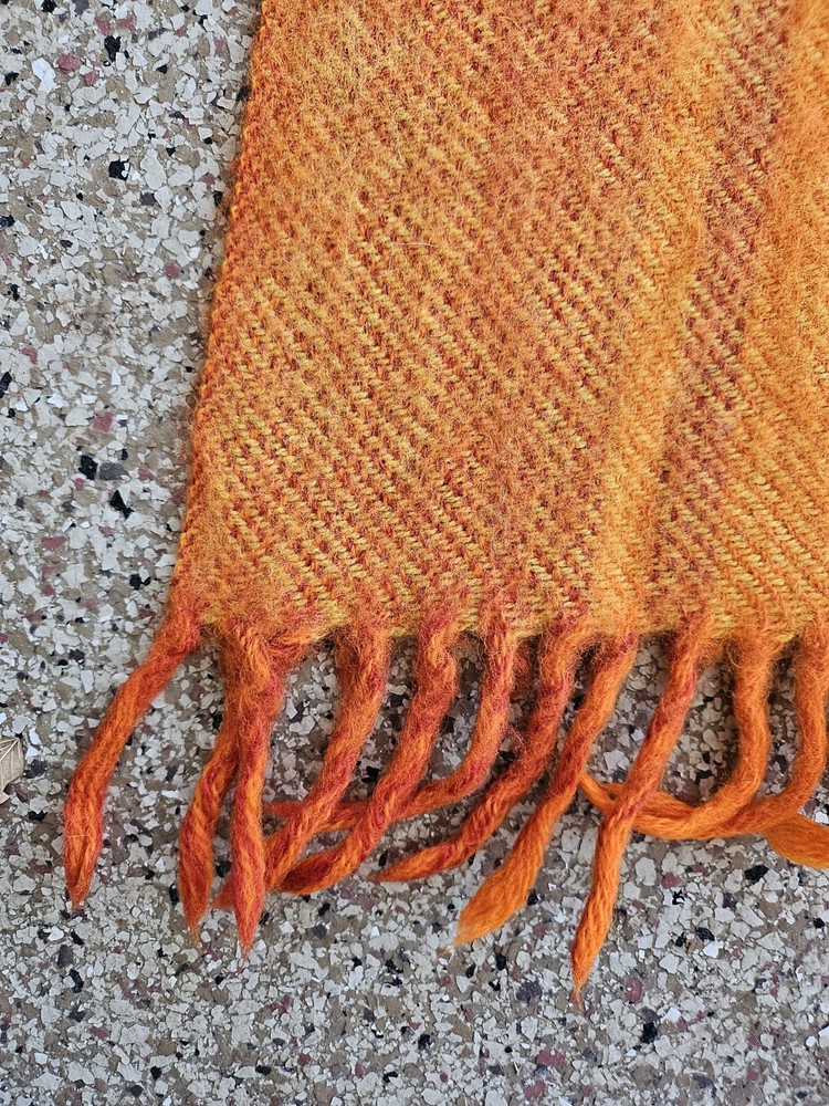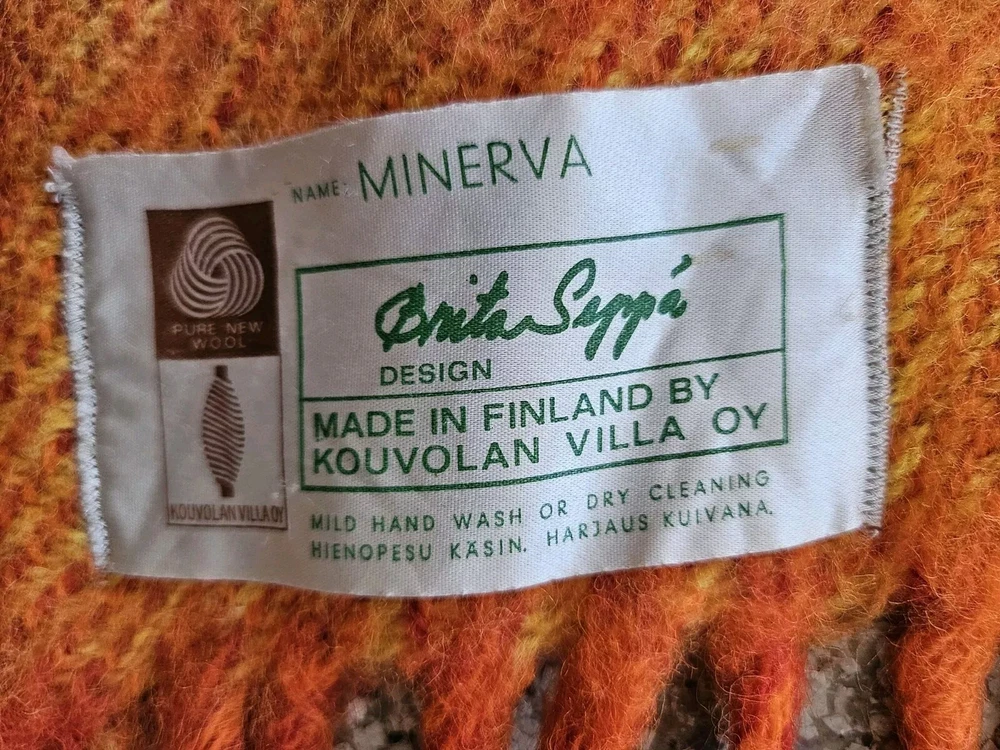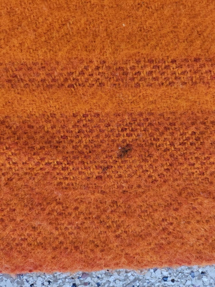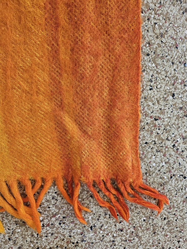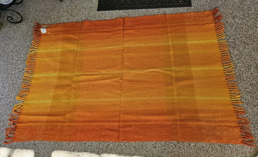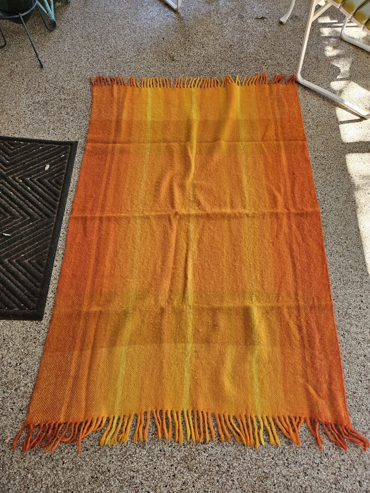 Rare Vintage Midcentury Brita Seppa Minerva Finland Orange Wool Throw 48" X 72" without the fringes Kouvolon Villa Oy Lovely blanket, some marks but no damage Nice and thick