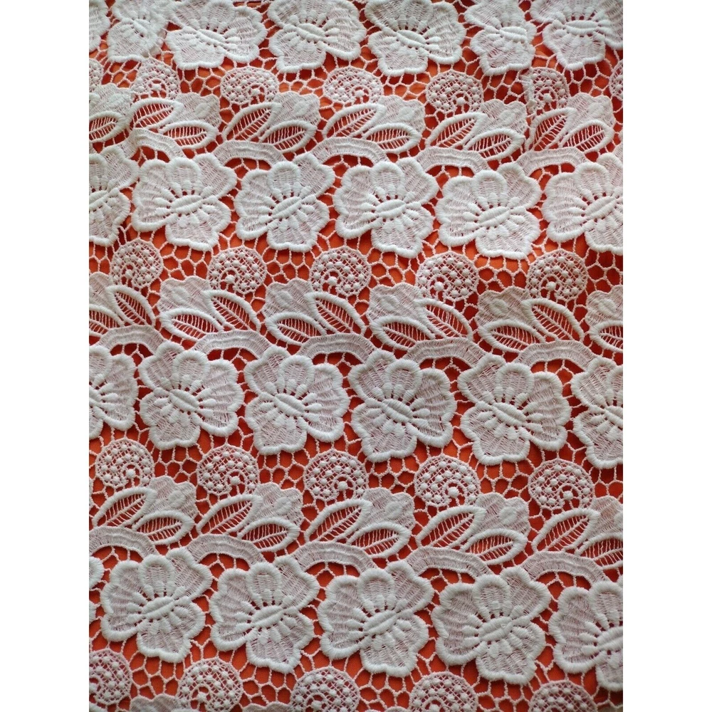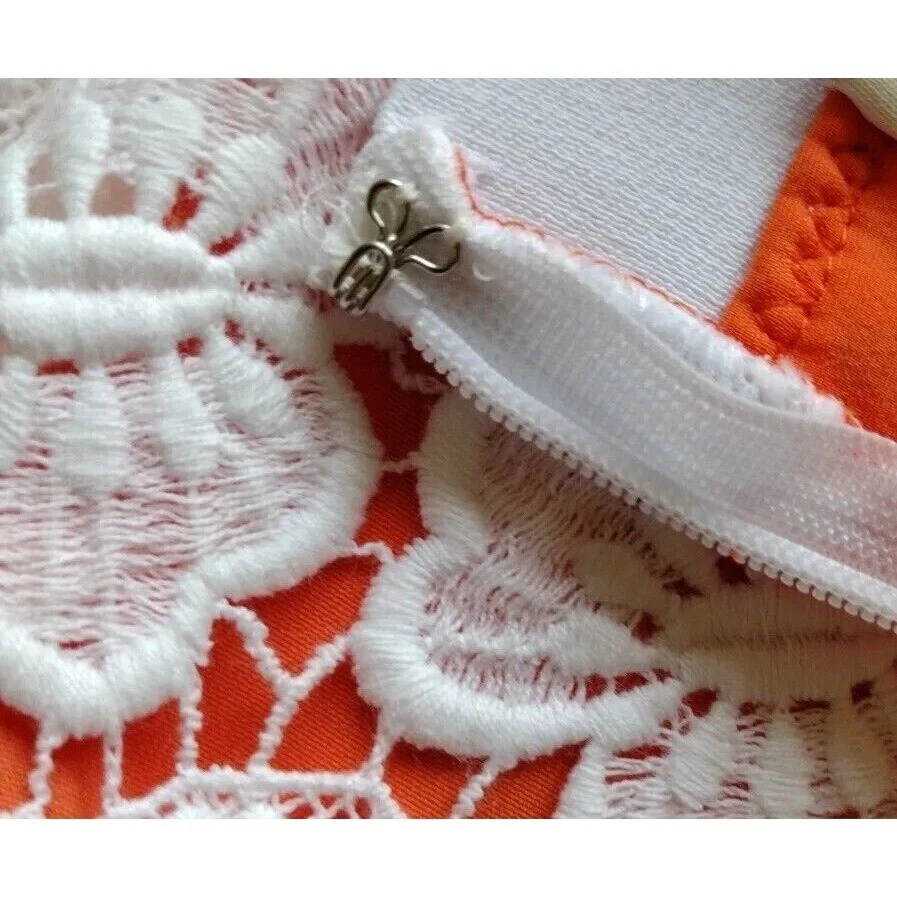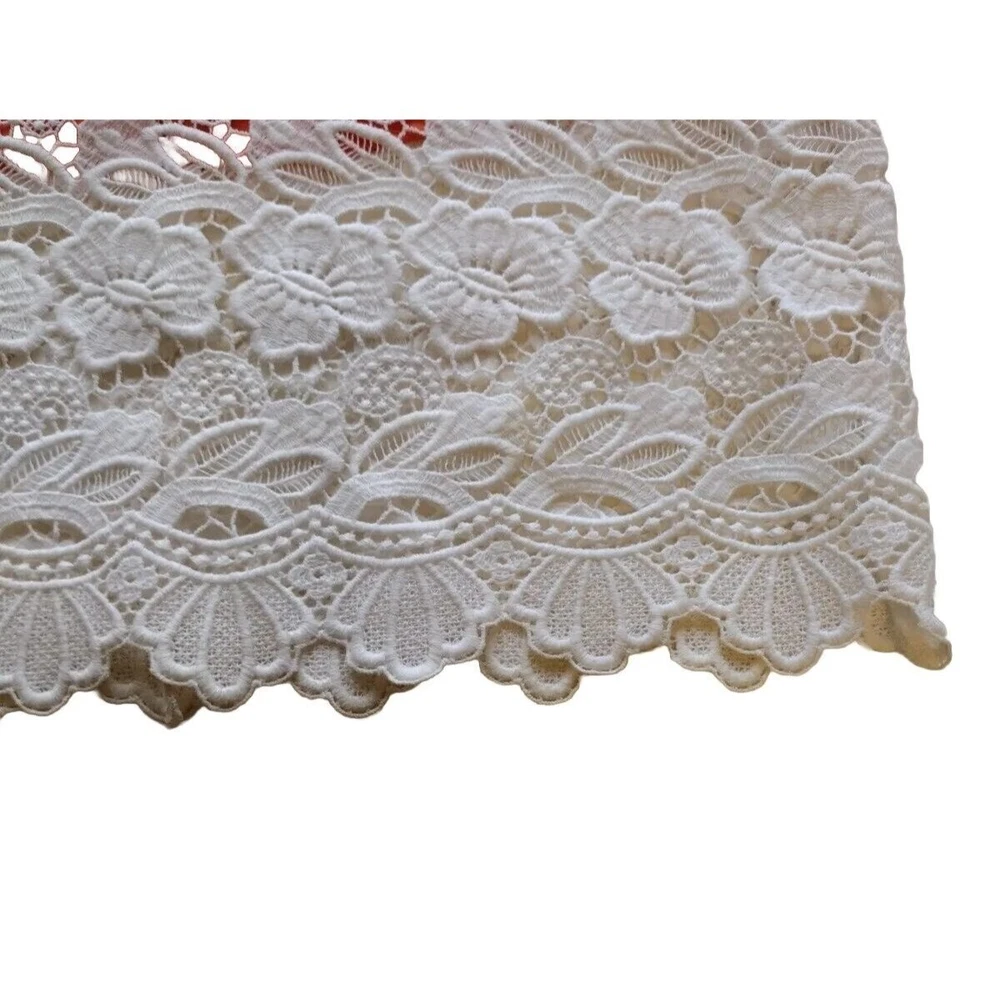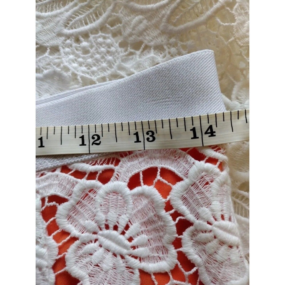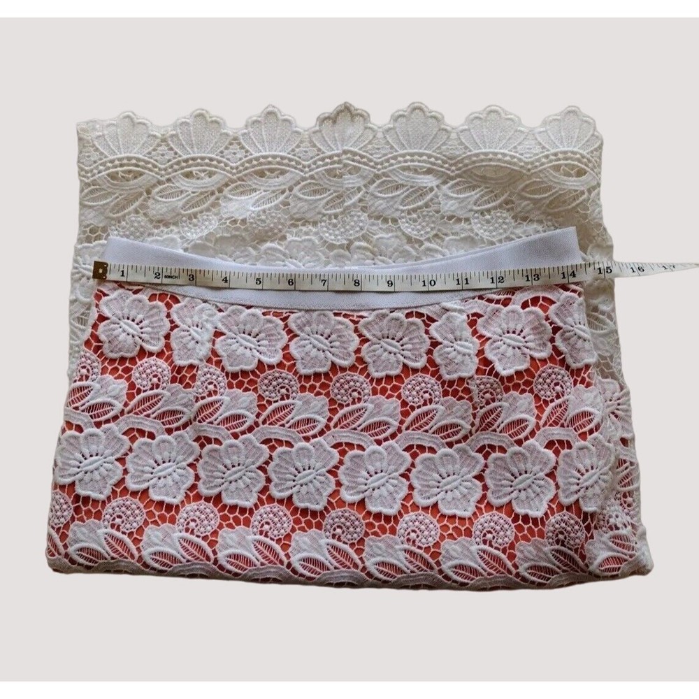 This beautiful Rebecca Minkoff skirt is a stunning addition to your wardrobe. The skirt features a floral pattern with a crochet overlay and an orange lining. It has an elastic waistband and a hook and eye closure. The skirt is knee-length and falls straight with a pencil style. It is made of polyester and cotton with a lace fabric type. The skirt is suitable for travel, parties, and cocktail events. It is available in size 6 and should be dry cleaned only. The skirt comes in multicolor and is perfect for the seasons of summer, fall, and spring. It has accents of crochet and a mid-rise with an elastic waist. This is a pre-owned item and expectation should be for general wash wear. Before shipping, we will clean it and include any tags that come with it. Although we launder all our items, they come from several sources such as estate sales, private individuals, liquidation facilities, and others. They may carry odors that we try to eliminate, but may require additional laundering.