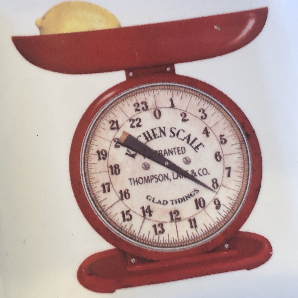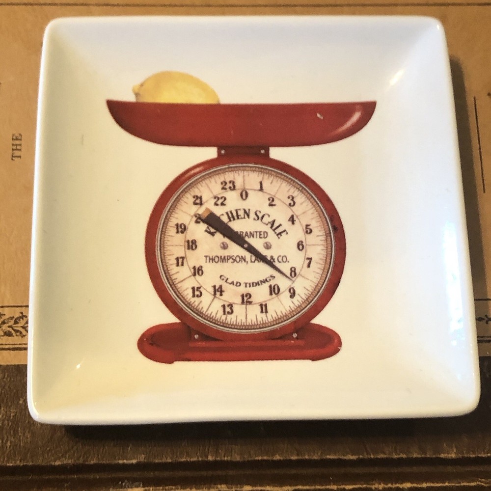 Trinket dish Red Kitchen Scale Creative Coop stoneware. So cute on a small easel in windowsill
