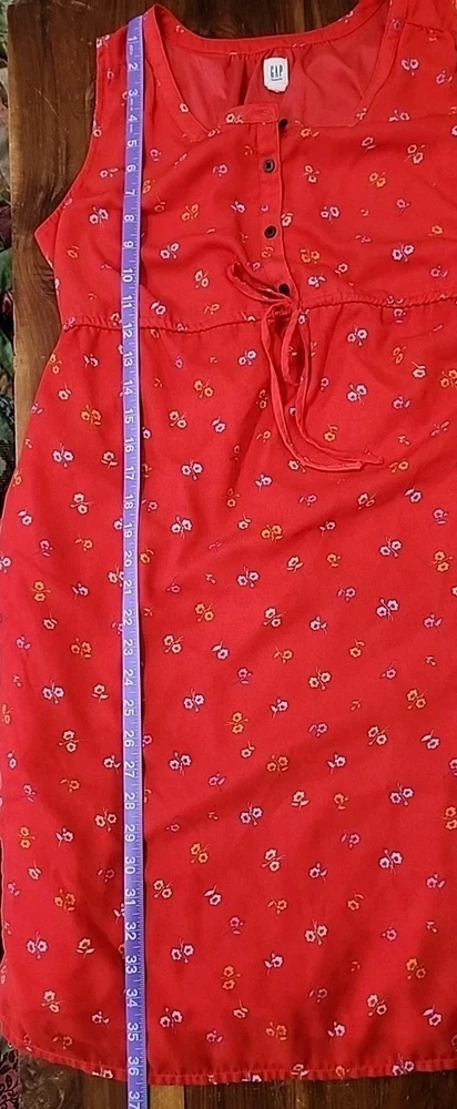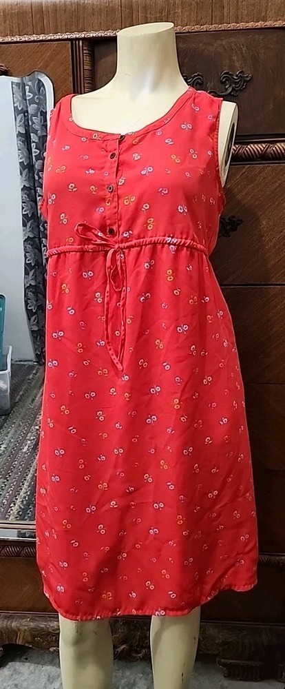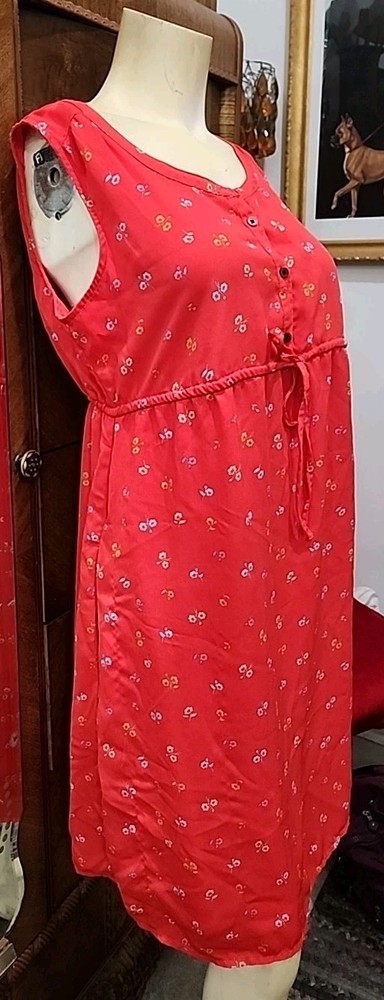 Very nice dress! 4 buttons and a drawstring on the chest. Measures 21" pit to pit and 36.5" from shoulder seam to hem. Very little wear, please see photos for details. Hidden side pockets.