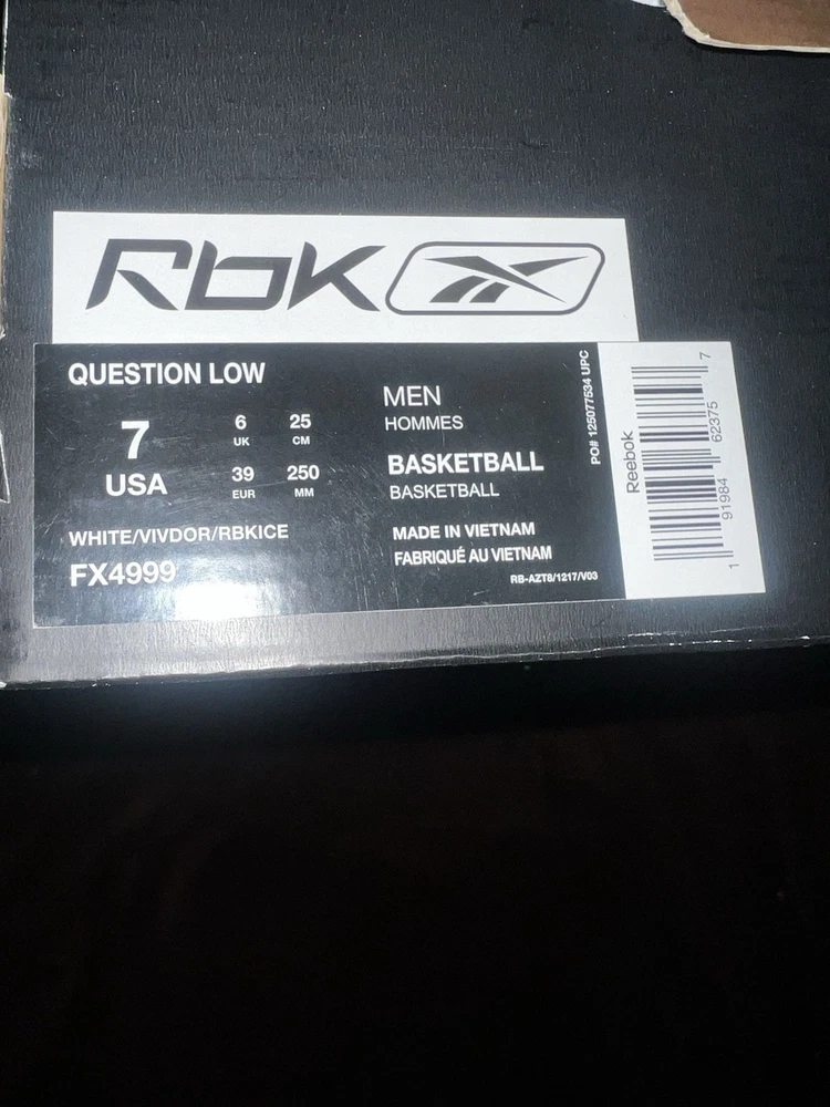 Allen Iverson Reebok Question Low -“FX4999” Men’s size 7 Comes in original box. No Discoloration or damage.