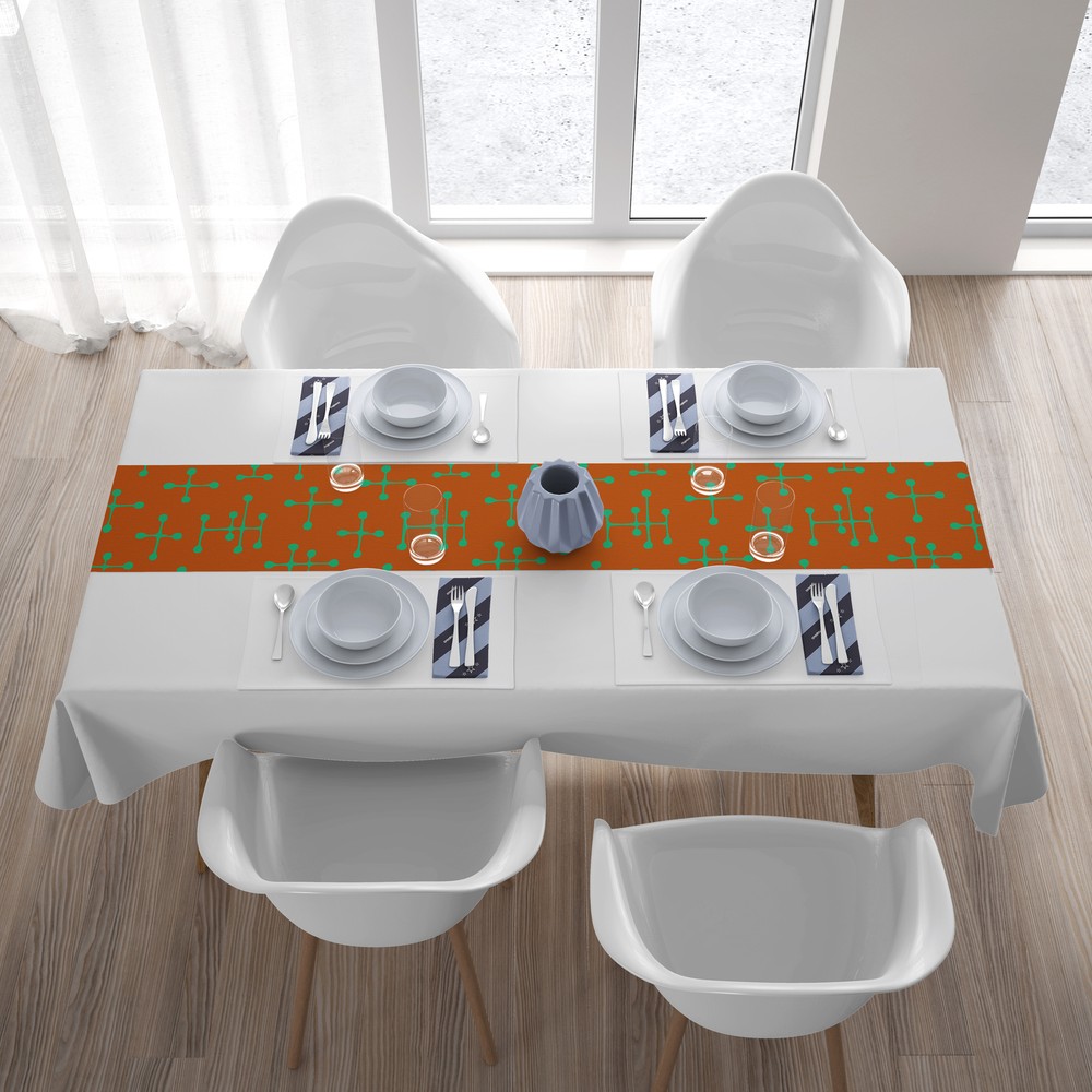 Remod Retro offers vintage style home goods for the 50's, 60's, or 70's home. All of our retro prints are co-ordinated across product lines so you can match curtains, to pillows, to dining table and kitchen. Be sure to visit us online to view all of our latest products. Don't forget to subscribe to be notified of sales and new items. We're always adding something new! All of our items are custom made at time of order. Please allow 3-5 days production time. These offer a quick way to frame a centerpiece and change out the dining room’s color while still showing off that gorgeous table underneath. Durable, wrinkle and stain resistant. Double layer with sewn edge. Print on one side, back is white. Measures 16”x72”.