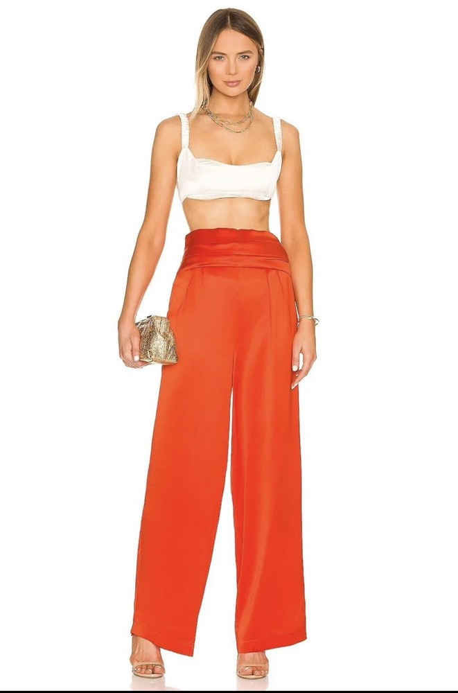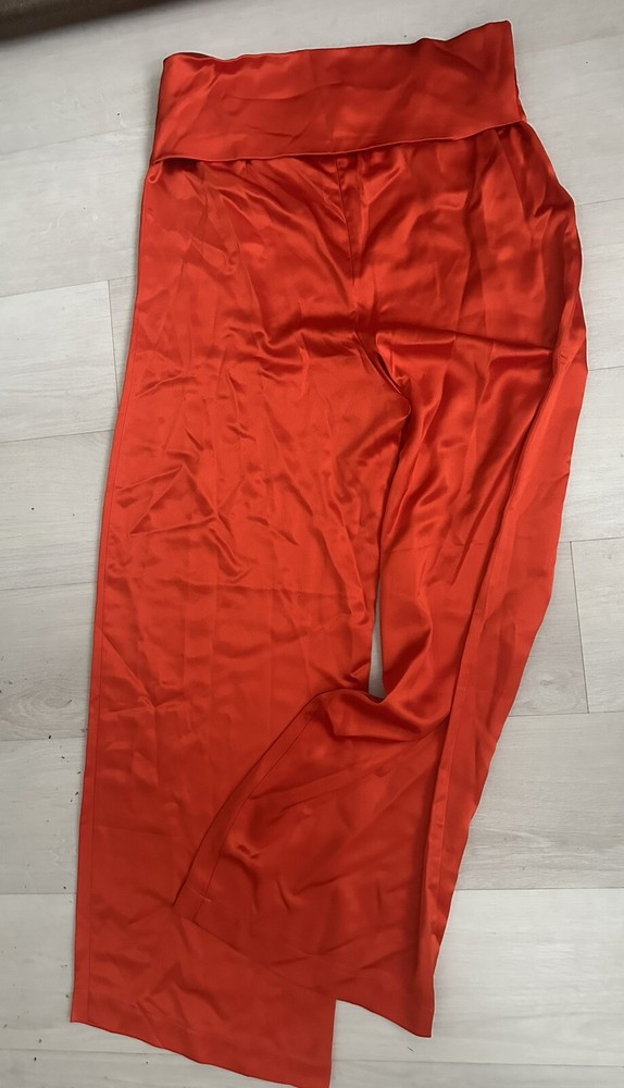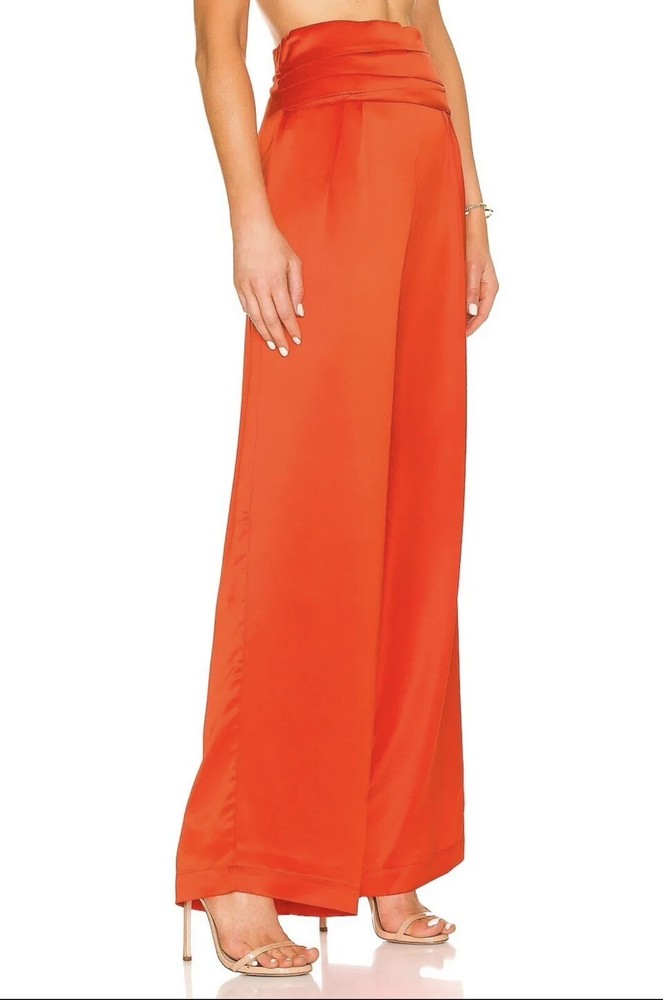 Nonchalant Label Women's Pascale Satin Wide Leg Pants Sz Large Orange NWT. Condition is New with tags. Shipped with USPS Ground Advantage....