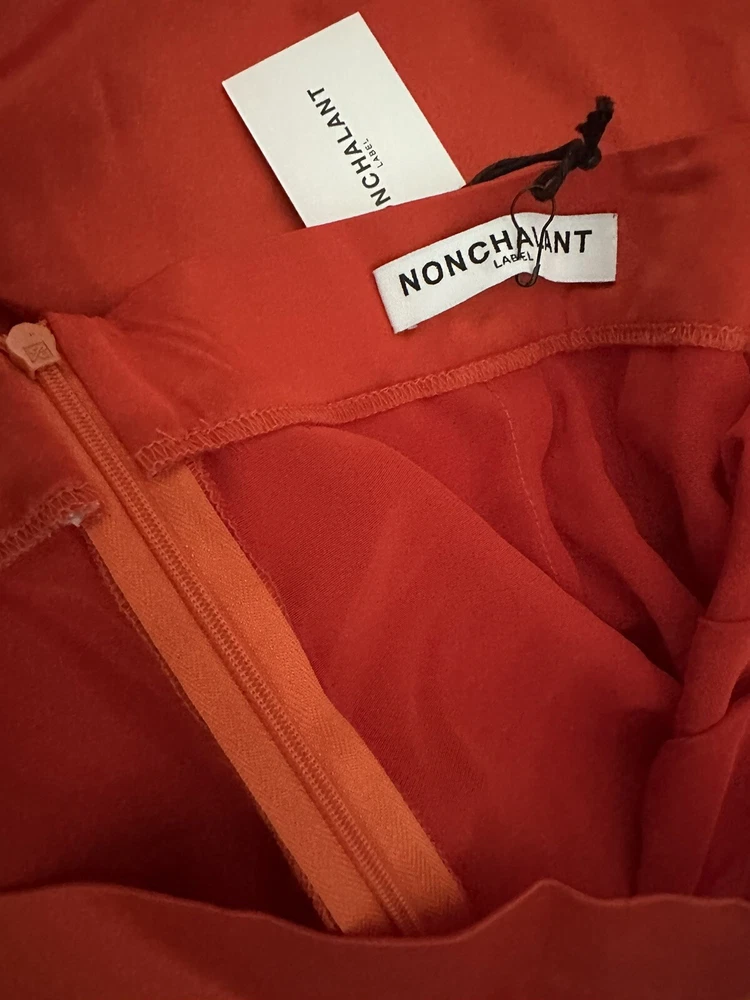 Nonchalant Label Women's Pascale Satin Wide Leg Pants Sz Large Orange NWT. Condition is New with tags. Shipped with USPS Ground Advantage.