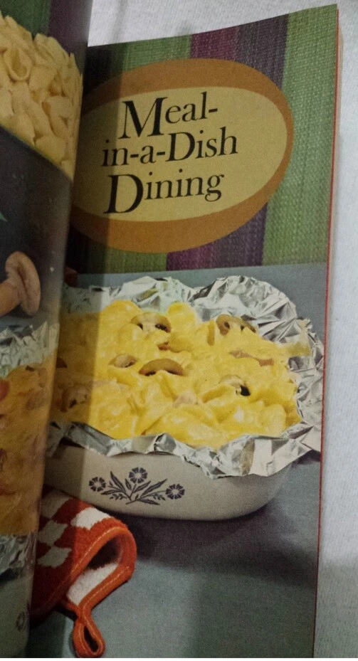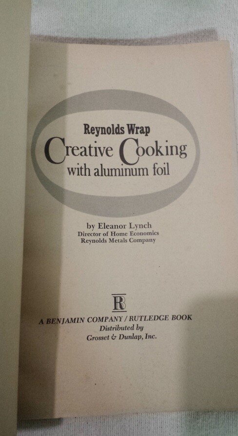 This deal is for a pre-owned copy of the Trade Paperback book -- Reynolds Wrap Creative Cooking with Aluminum Foil Eleanor Lynch 1967 Paperback. We were very amused when we opened the book to find pictures of the the Corning ware Blue Cornflower Pattern Casserole dishes. 193 pages. This is an actual bound paperback book, rather than a promotional booklet (like fold and staple booklets). We believe the binding is in good condition. We do not think this book was ever opened. The book is very stiff, so we did not push it open. Please see pictures for full description. Fast shipping from Orlando.