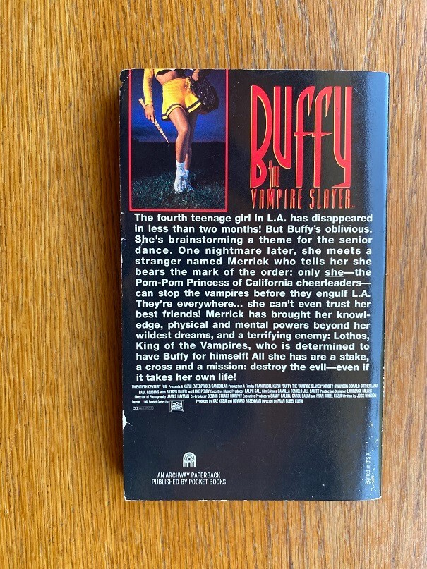 First edition second printing of the novelization of the 1992 movie starring Kristy Swanson. Published by Archway Books / Pocket Books of New York in 1992. Light age toning to the back side of the covers. A hint of edge wear. In near fine condition. Thank you. Don Scene of the Crime Books