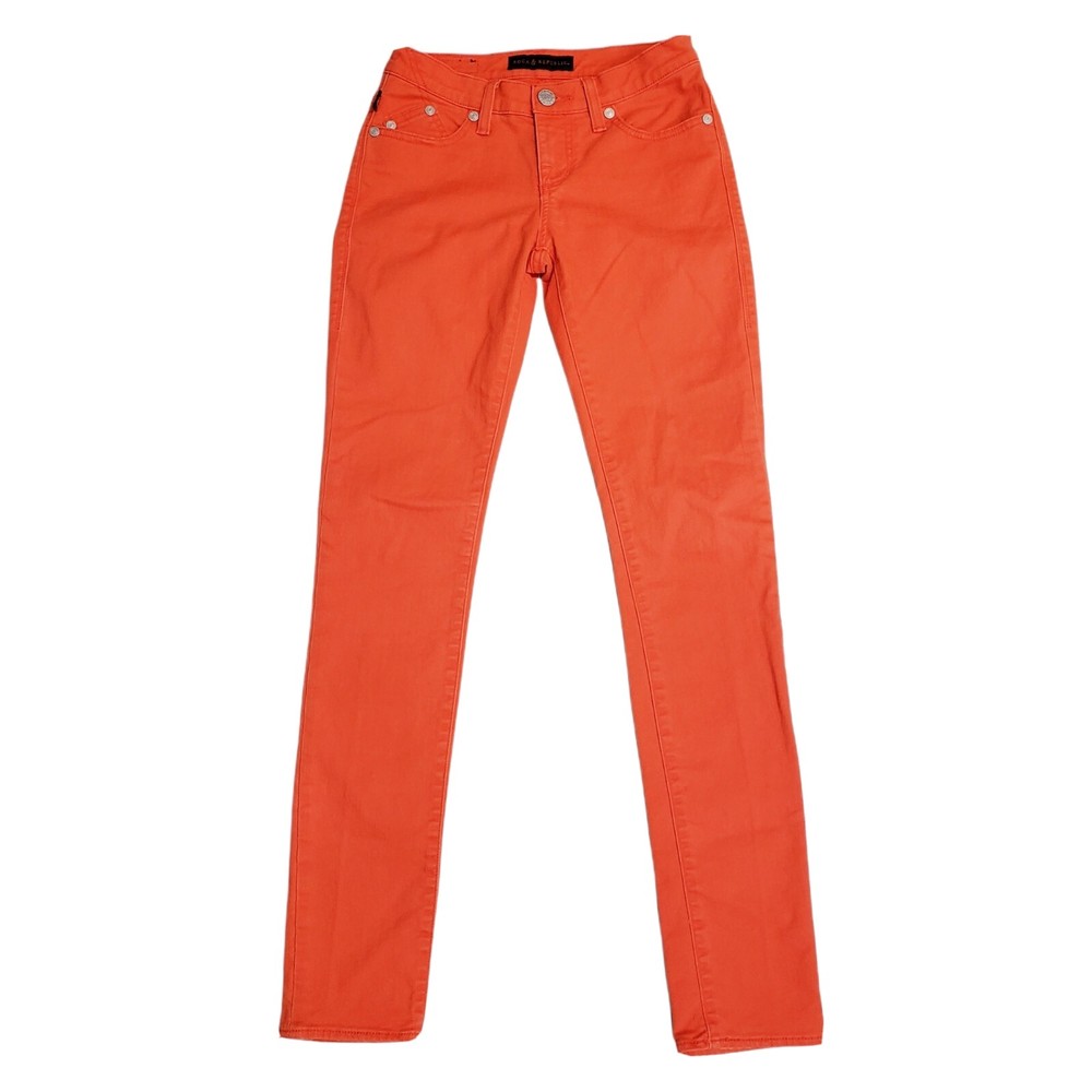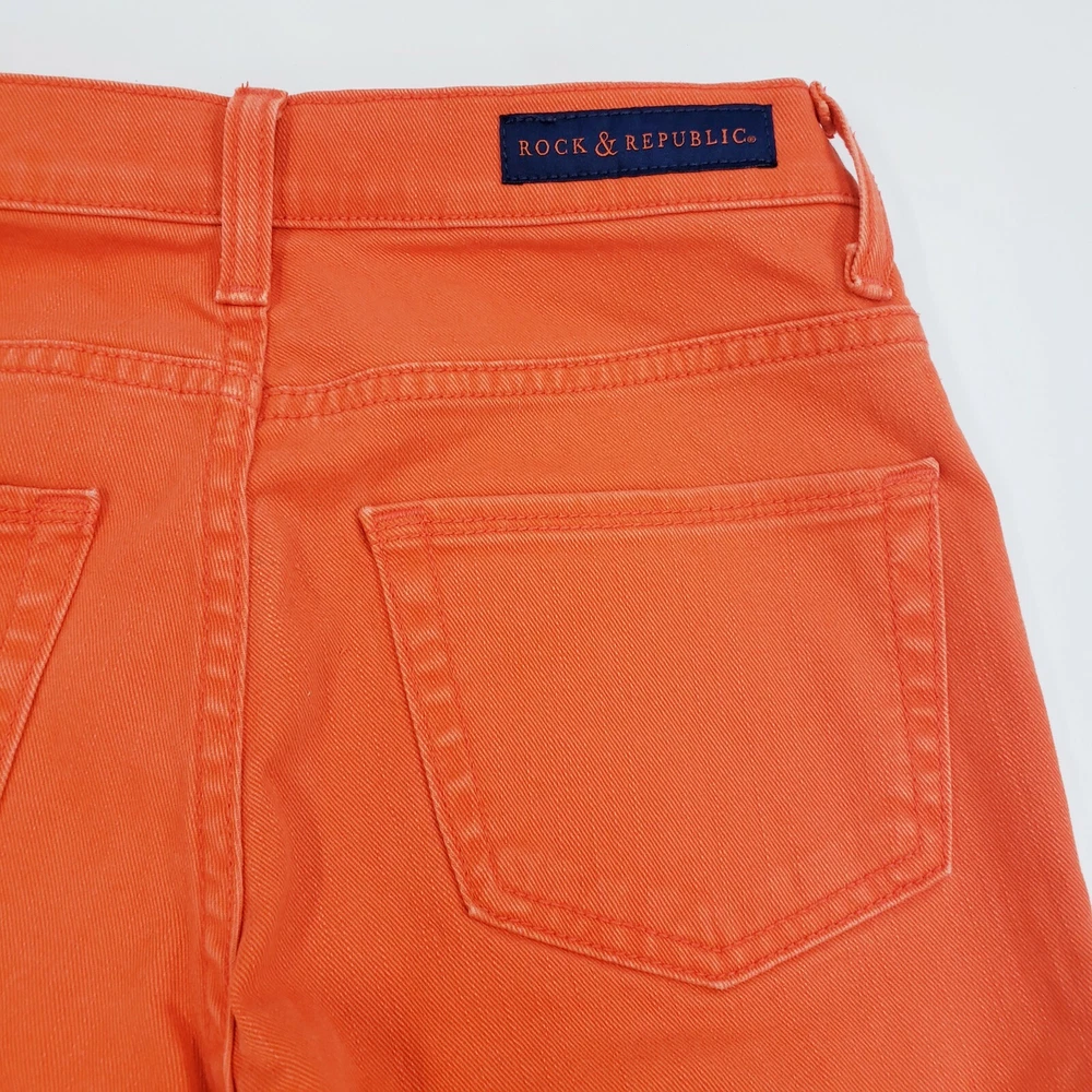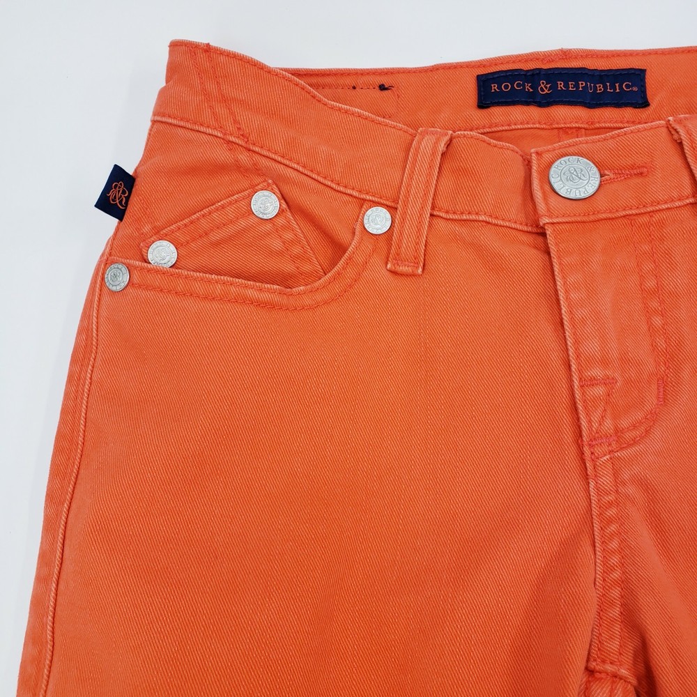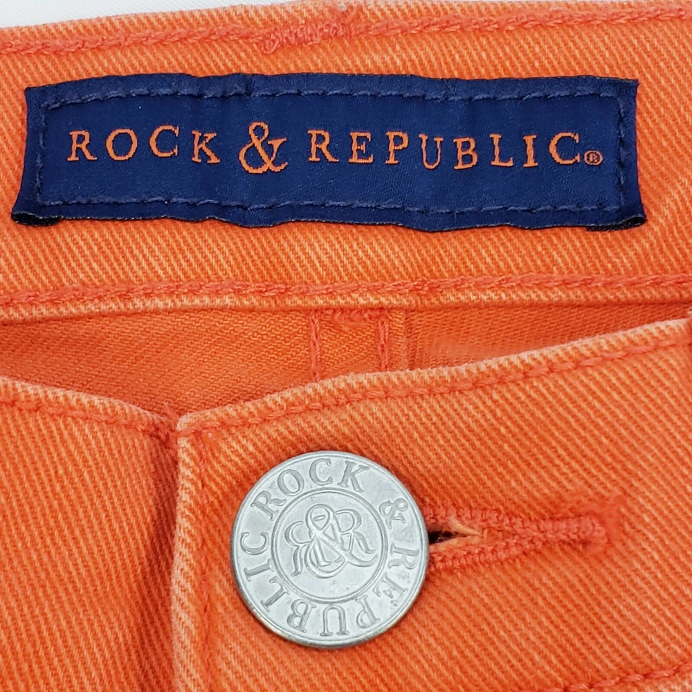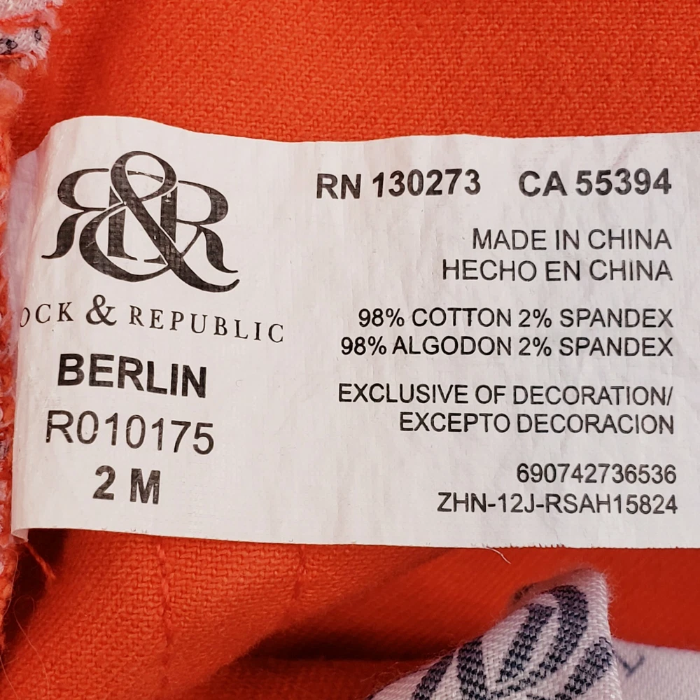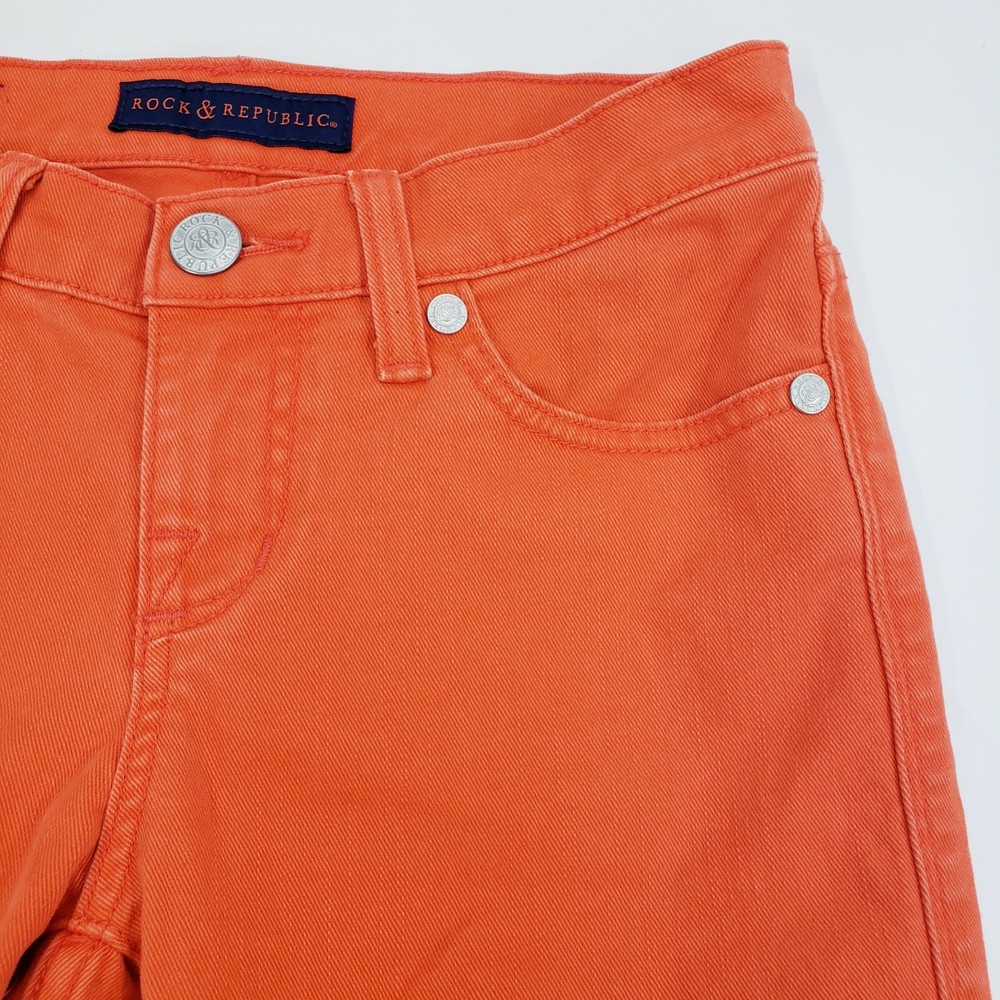 Rock & Republic Berlin Womens Skinny Jeans Size 2M Orange Mid Rise Stretch In Excellent Condition Measurements taken laying flat in inches Waist : 14 Rise : 8 Hips : 17 Inseam : 31 Leg opening at hem : 5.5 Please contact me with any questions or concerns Thank you