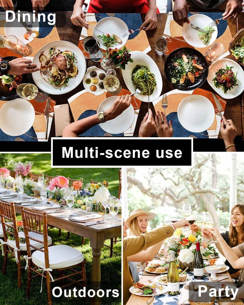 Overturned dishes, messy tableware, messy tabletops, and damaged tabletops plague us every time we eat, and the appearance of placemat solves most of the problems very well. Placemats Feature Place mat is made of microfiber polyester, the pattern is high-definition and not fade, the professional weaving technology makes the place mats can be used for a long time, and not easy to deform. Place mats can well ensure the clean and tidy of the tabletop, round table placemats for dinner can also reduce the noise of tableware, improve the quality of dining and save the time to clean up. In terms of appearance and functionality, this is one of the must-have furniture for our life. Using Scene Round table placemats is thick and soft, can be used for a long time. Protects tabletop surfaces and reduces tableware noise. Can be used for indoor and outdoor, such as picnic, dinner, kitchen, dessert house, cafe, office, barbecue, party, wedding, etc. Gift High definition printing of round table placemat's pattern, support custom design, look very fashionable. Cute patterns can make the home warm, simple patterns can make the house advanced. So wedge placemat is a great gift, when St Patrick's Day, Easter Day, Valentine's Day, Christmas, Thanksgiving, Housewarming, etc. Warn Tip All dimensions are measured manually and the deviation is 1-2 cm. The physical product may have slight color difference with the product in the screen due to the difference of the computer display. Our fan shape place mats have loyal after-sales service support, if you have any questions, please contact us! & Beaty: The material of place mats is microfiber polyester, exquisite edge, not easy to deform, high quality and durable. HD printing patterns, highlighting the high-level beauty, all kinds of styles for you to choose, place mat can also become a landscape in your home when not in use. Waterproof and Non-Slip: Round table placemat has extremely waterproof performance, water and milk can not pass through, round table placemat for dining can effectively prevent the tabletop from getting wet, and not easy to slide. During meal time, your fan shape place mats can limit the sliding of your tableware, ensuring you happy dining. Suitable Size: Fan shape place mats set of 4, the size of each piece is upper wide 12in(30cm), lower wide 18in(44.5cm), height 12in(34cm). Wedge place mat take up little space, and can be rolled up for storage. Place mat only needs to be flattened when using it, save your housework. The size is large enough to place a certain number of tableware and water cups, and the shape is suitable for round, square and other shape tables. Protect Tabletop & Decor: Wedge place mat can protect your table from being dirty and scratched, and keep your table tidy. We have plaid, retro, modern, animal, floral, landscape and other styles for you to choose. They are also great decorations for St Patrick's Day, Easter Day, Valentine's Day, Christmas, Thanksgiving, Birthday, Dinner. Beautify the desktop while protecting the desktop. Easy Care: Round table place mats are easy to clean, simply rinse with water or simply wipe with a damp cloth, using a soft brush if necessary. Not easy to fade, and easy to dry. If you have any questions please contact us, we will give you satisfactory answer within 24 hours.
