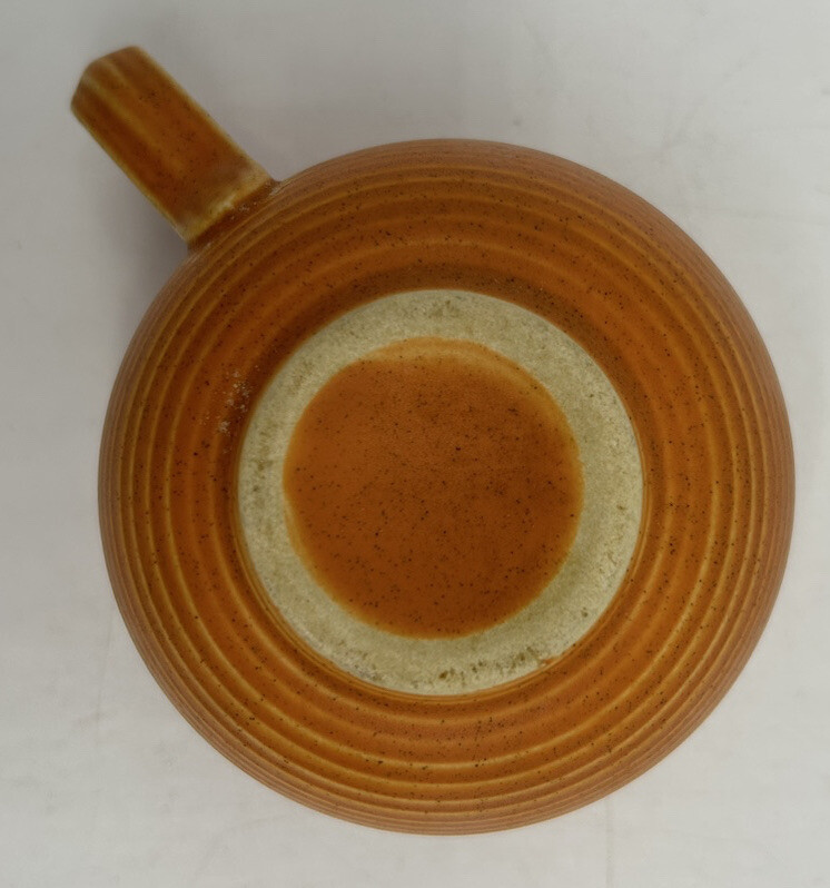 Rare cup and saucer, Royal Stone in orange with black specks. Manufactured in the 50's or 60's. Set is in great condition with no chips or cracks. This would make a great addition to your mid century decor. Measure approximately: 6 3/8" Plate Diameter 2 5/8" cup Height