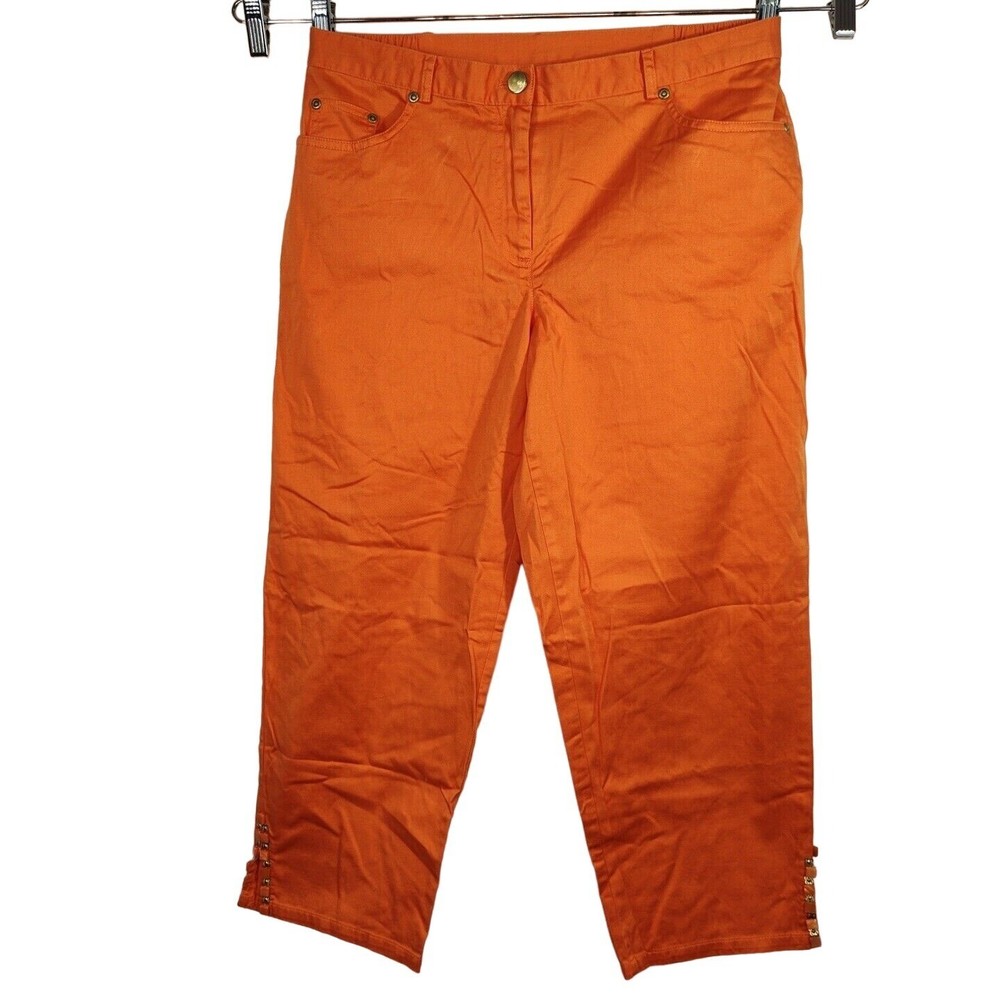 ITEM DESCRIPTION: Ruby Rd Orange Straight Leg Zipper Fly Cropped Pants Fall, Halloween Women Size 10 ITEM CONDITION: Pre-owned...Great Used Condition ITEM MEASUREMENTS (Laying flat): Waist: 14.5 in Hi...