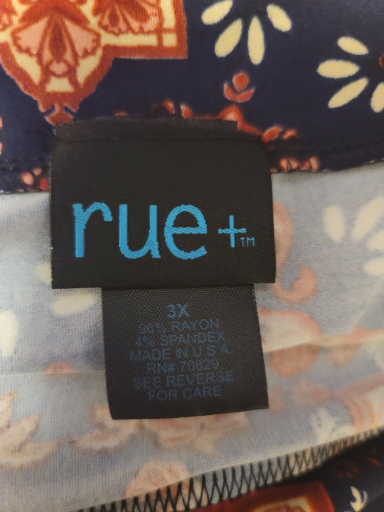 Rue 21 Blue & Orange Damask High-Low Skirt Women's Size 3X. Condition is "Pre-owned". Shipped with USPS First Class. Waist - 42" but stretchy Length in front - 23"/Back - 40"
