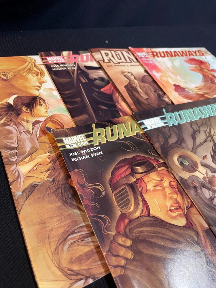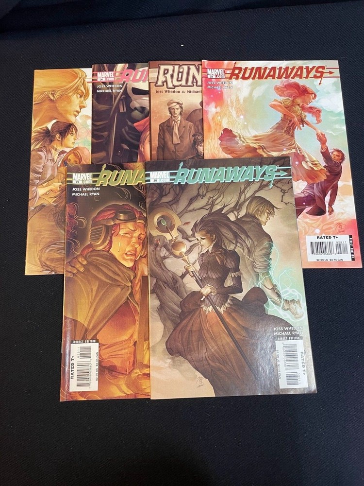 About This Auction: Runaways #25-30 Note: 29 has a tear on the cover By Joss Whedon for Marvel Comics 6 Comics Total! *** These comics are solid, gently read, collectible copies unless specified otherwise in the description below*** Our goal is to assemble the best run of a series in its most complete and collectible form. We carefully consider the quality of each comic in the lot when determining its auction value as a whole. We do not place a grade on individual comics; instead we provide clear pictures for you to gauge the overall quality. **Please contact us for any questions or requests for additional photos** Please note: Our comics are not sold individually bagged and boarded. (If the images provided show comic books with bags/boards, please note the bags/boards have been removed! We do not sell comics individually bagged and boarded) Shipping: We offer Priority shipping services and pack items securely. Items are shipped within 1 days after payment has been received barring weekends and holidays. Items over $200 require a signature upon arrival. To ensure your books arrive safely, we bag our comics in bundles of 4-7 books per golden bag and place comic boards between the bundles to protect the book on all side. We have found this method to prevent movement during shipping. Contact Us: Please contact us directly to discuss any questions, concerns or to request additional detailed photos. We pride ourselves on our evaluation process and our prompt customer service. We're always happy to work with you to ensure total customer satisfaction before your transaction is complete. _____________________________________________ ** Comicazi Inc.** Comicazi is located in located in Somerville, Massachusetts 2017 Eisner Award winning retail shop specializing in comic books, graphic novels, toys, games, and more!! ** Ebay user ID: comicazionline ** Inventory: Marvel 106