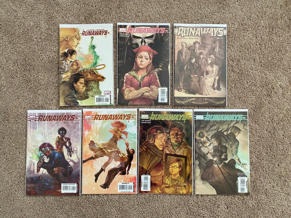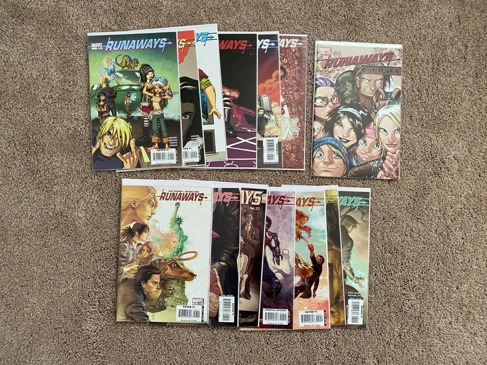 RUNAWAYS Comic Book LOT (14 comic books) Marvel Comics Joss Whedon This comic book lot includes the following issues Runaways Vol. 2 #25-30, also includes variant cover of #28 (2007) Runaways Vol. 3 #1-6 (2008) Runaways Saga #1 All books are in good condition, VF/NM, adult owned. No rips, tears, creases or markings. If you have questions or would like more pictures, please feel free to message me. I try to describe the condition as best as possible, but I don't want anyone to be disappointed upon arrival if something isn't as it was described. So please message me if you have any questions or concerns. Check out our store for comic books, graphic novels, trade paperbacks, as well as retro video games, gaming magazines, toys, comics, tech and more! Be sure to Save Us as a seller to be notified when we add new items!