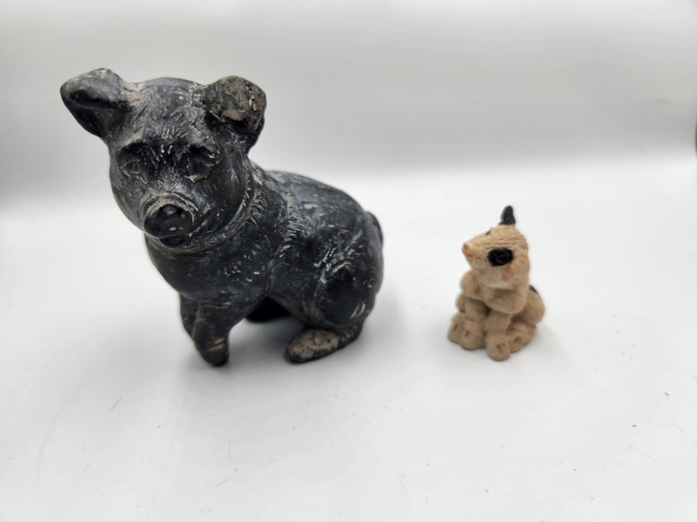 This charming pig figurine by Creative Co-Op will make a great addition to any collection. Crafted from heavy and solid resin, the piece boasts a rustic look with shades of black and gray. The pig is exquisitely detailed and will surely impress any collector or admirer of farm animals. Made from high-quality materials, this delightful little pig will stand the test of time. Its resin construction ensures that it is both durable and long-lasting. Perfect for those who love farm and countryside collectibles, this pig figurine will make a wonderful gift or a unique addition to your own collection.