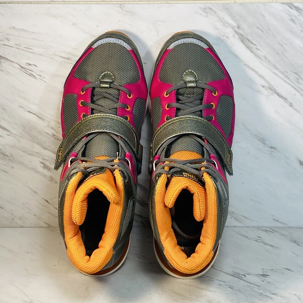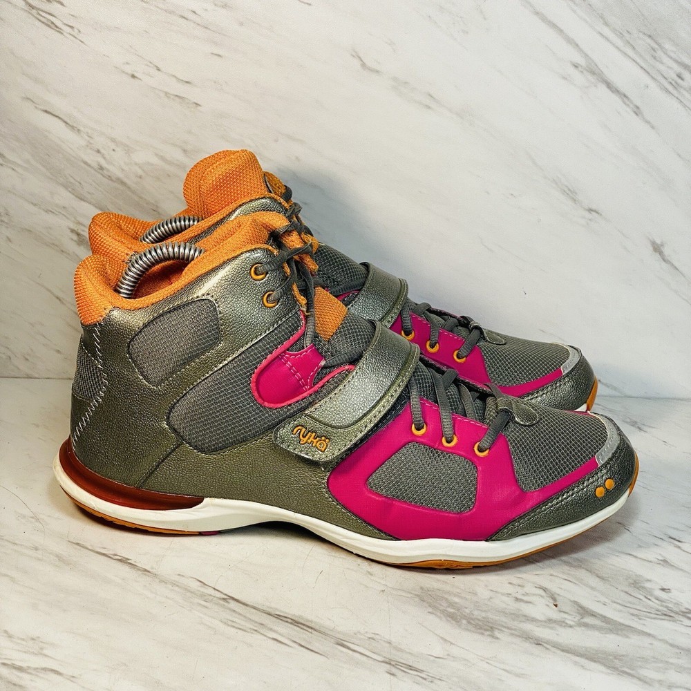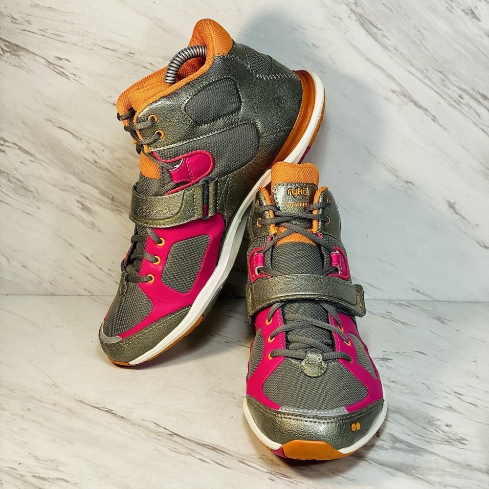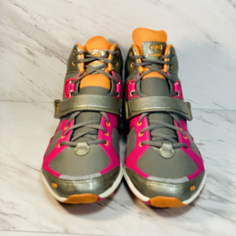 Get ready to take on any athletic challenge with these Ryka Downbeat Mid Athletic Shoes. Designed for women, these sneakers feature a mid-top shoe shaft style that provides excellent support and comfort. The shoes are made with a pink-colored upper and a gray and orange sole, making them stylish and vibrant. The shoes are pre-owned and have been taken care of, ensuring that they are in great condition. With a US shoe size of 9, these athletic shoes are perfect for any woman looking for comfort and style while exercising. The shoes are categorized under Clothing, Shoes & Accessories, Women, Women's Shoes, and Athletic Shoes. Add these stylish and supportive athletic shoes to your wardrobe today!