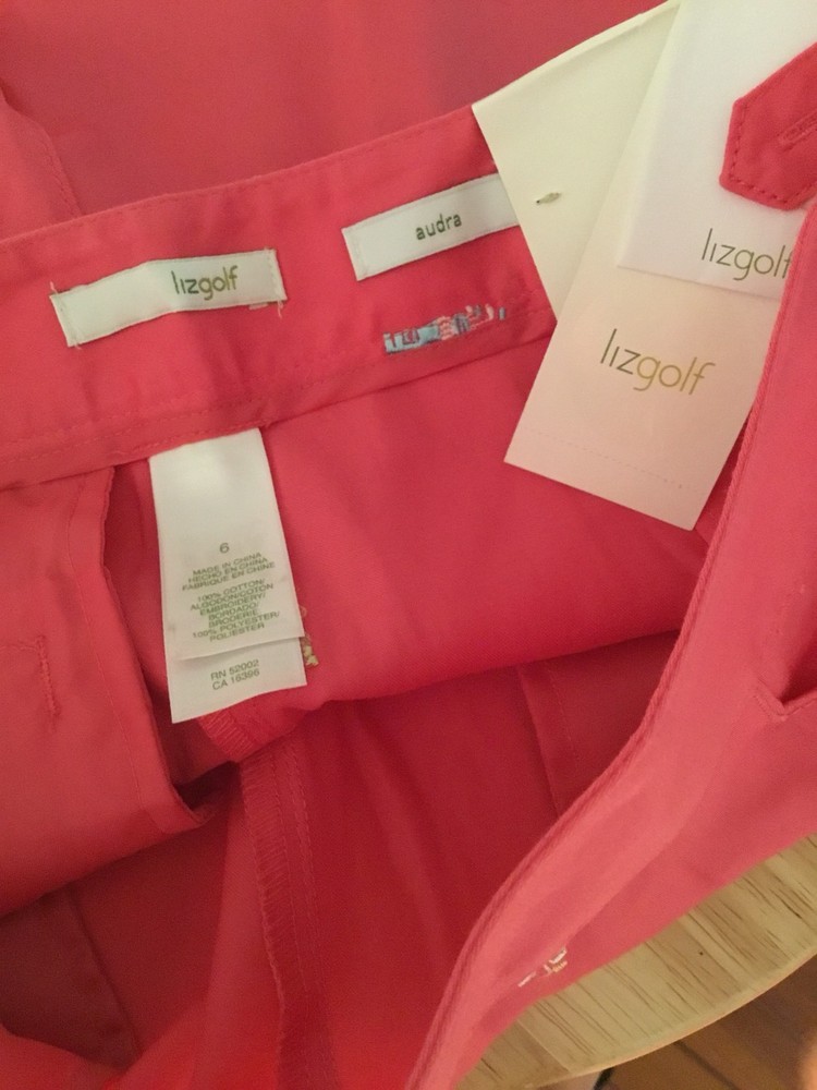 Miss Shells Closet LIZ GOLF NEW WITH TAGS SUPER CUTE GOLF SHORTS FLAT FRONT CORAL EMBROIDERED CLUBS LADIES SZ: 6 HOUSEKEEPING ITEMS ** WE SELL PRIMARILY "USED" GARMENTS. IF A THREAD OR LOOSE BUTTON OR PULL WILL BOTHER YOU, YOU MIGHT WANT TO BID/PURCHASE SOMEWHERE ELSE. ALL OF OUR ITEMS ARE CHECKED AT LEAST 3 TIMES, WE TRY TO CATCH ALL THINGS BUT THESE ARE "USED/PREVIOUSLY OWNED" GARMENTS. AGAIN WE SELL PRIMARILY "PREVIOUSLY OWNED/USED" GARMENTS AT HUGE SAVINGS! **WE DO SELL NEW ITEMS WHICH ARE NOTED. THESE HAVE HUGE SAVINGS! WE DO GET ODD THINGS FROM TIME TO TIME OUTSIDE OF THE GARMENT VENUE... IF YOU HAVE QUESTIONS ASK. A LIL MORE... NWT- NEW WITH TAGS... THIS IS A GARMENT THAT IS NEW WITH THE TAGS! ALWAYS A GREAT DEAL. NWOT- NEW WITHOUT TAGS, THE GARMENT HAS NO TAGS, IE; SET WITH ONE PIECE, TAG RIPPED OFF, OR OTHERWISE. EUC- GARMENT THAT IS EXCELLENT USED CONDITION (POSSIBLY WORN OR NOT, WASHED OR NOT, OFTEN TIMES THESE ARE NEW. BUT WE CANT POST THAT, AS WE CAN NOT VERIFY.) VGUC- GARMENT THAT IS IN VERY GOOD USED CONDITION. WORN & WASHED, USUALLY JUST A FEW TIMES, TONS LIFE! COLORS MIGHT BE A SHADE OFF,(DUE TO WASH, WE TRY TO NOTE) SLIGHT PILING (WE TRY TO NOTE) NO HOLES, (IF THERE IS WE WILL NOTE) GUC- GARMENT THAT IS IN GOOD USED CONDITION. WASHED & WORN, LOTS OF LIFE. NOT IN AS GOOD AS CONDITION AS VGUC ...ANY OTHER ISSUES WOULD BE NOTED. CRAFT- FOR OUR CRAFTERS AND SEWERS OUT THERE... USUALLY FURS AND FORMALS THAT NEED AN OVERHAUL. LOTS- A GROUP OF GARMENTS UP FOR AUCTION FOR ONE LOW PRICE. ( LIKE A GRAB BAG ) WE DO SELL LOTS THRU THE YEAR.. ALWAYS A DEAL! SIZING~ ALL SIZES ARE MANUFACTURE SIZING.. WE DO NOT SIZE THE GARMENTS, THE MANUFACTURES OF THE GAMENTS DO. IF YOU HAVE ANY QUESTIONS OR ARE IN NEED OF ANY FURTHER MEASUREMENTS, PLEASE ASK PRIOR TO AUCTION ENDING! AGAIN MOST ITEMS ARE "PREVIOUSLY OWNED/USED GARMENTS" PLEASE DO NOT LEAVE NEGATIVE REMARKS REGARDING SIZING, AS WE HAVE NO CONTROL. ***ANY OF OUR ITEMS LISTED WOULD BE WORN BY ANY OF US HERE! IF WE WOULDN'T WEAR IT, WE WONT SELL IT! SALES~ NO 'BUY IT NOW' OFFERS WILL BE ACCEPTED ON SALE ITEMS. EBAYS PROGRAM DOES NOT ALLOW THE 'buy it now' FEATURE TO BE TURNED OFF DURNING A SALE. -WE APOLOGIZE. WE DO HAVE FLASH SALES AND % OFF SALES. THEY ARE WHAT IS STATED. PAYMENT..... ALL AUCTIONS MUST BE PAID FOR WITHIN 3 DAYS OF THE CLOSE OF AUCTION. BUY IT NOW MUST BE PAID UPON SALE. NO EXCEPTIONS! WE ACCEPT PAYMENT THRU PAYPAL ONLY, NO ECHECKS. ****ANY ISSUSES THAT MAY ARISE PLEASE COMMUNICATE THEM WITH US ASAP. COMMUNICATION IS KEY! IF PAYMENT IS NOT RECIEVED A NON-PAYER CLAIM AGAINST YOU WILL BE OPENED! SHIPPING.... WE SHIP FLAT RATE USPS, FIRST CLASS, PRIORITY ( DEPENDS ON WEIGHT) WITH TRACKING, WE CAN NOT BE HELD RESPONSILE FOR LOSS IN SHIPPING. IF YOU WISH TO HAVE INSURANCE PLEASE EMAIL US AND WE WILL ADJUST THE SHIPPING CHARGE FOR YOU, BEFORE PAYMENT. WE TRY TO KEEP OUR SHIPPING CHARGES TRUE TO RATE, SUPPLIES & GAS. (WE ARE NOT MAKING $$ HERE, EBAY CHARGES US A FEE ON EVERY SHIPING TRANSACTION) SO WE ACTUALLY PAY MORE THAN WE CHARGE YOU! COMBINDED SHIPPING..... WE LOVE TO SAVE YOU MONEY! WE DO COMBINE ON SINGLE ITEMS, NO COMBINED SHIPPING ON LOTS. OR "BUY IT NOW' ITEMS* ***** PLEASE DO NOT PAY FOR YOUR ITEM, CONTACT US AND REQUEST COMBINED SHIPPING, IT IS NOT AUTOMATIC. ONCE YOU PAY WE CAN NOT COMBINE DUE TO ALL THE FEES THAT ARE CHARGED WHEN YOU PAY. WE DO NOT SHIP INTERNATIONALLY, WE DO NOT SHIP ON WEEKENDS OR HOLIDAYS. DESCRIPTIONS.... ALL ITEMS ARE PHOTOGRAGHED AND DESCRIBED TO THE BEST OF OUR ABLITIES. WE ARE HONEST AND WILL ANSWER ANY AND ALL QUESTIONS. PLEASE ASK PRIOR TO AUCTION CLOSE. COLORS ARE PHOTOGRAPHED IN THE BEST POSSIBLE LIGHT AND ALSO STATED IN THE DESCRIPTION. AGAIN IF YOU HAVE A QUESTION PLEASE ASK PRIOR TO AUCTION CLOSE! NOTE```` IF YOU RECIEVE AN ITEM AND YOU DO NOT LIKE IT ( IT HAPPENES, THIS IS THE INTERNET, NOT A WALK IN STORE) IF IT DOESN'T FIT WE ARE SORRY, WE DON'T KNOW YOUR SIZE! ****PLEASE DO NOT LEAVE NEUTRAL OR NEGATIVE FEEDBACK.... PLEASE CONTACT US ASAP! AGAIN OUR DESRIPTIONS AND PHOTOGRAPHS ARE AS TRUE AS WE CAN GET TO THE PRODUCT AND WE ARE AS HONEST AS WE CAN BE., OUR SELLER RATINGS ARE BASED ON YOUR RATINGS AND FEEDBACK SO PLEASE DO NOT LEAVE LOW OR UNFAVORAVLE RATINGS, AGAIN CONTACT US, WE ARE WILLING TO WORK OUT ANY AND ALL ISSUES NO MATTER HOW BIG OR SMALL! WE ARE A VERY FAIR SELLER. ~~~OUR ITEMS COME FROM A PET FREE SMOKE FREE ENVIORNMENT ( NO FUNKY SMELLS , OR SO WE TRY! (We don’t use fabric sprays) ITEMS ARE CLEAN OR NEW. **THANK YOU FOR LOOKING AT OUR ITEMS. WE HAVE MANY MORE AND ADDING NEW ONES ALL THE TIME, SURE TO BE A BARGIN! RETUNS/REFUNDS~~ OUR POLICY IS SIMPLE. ITS WHAT EBAY REQUIRES. .... WE DO NOT PAY FOR ANY RETURN SHIPPING CHARGES, ALL RETURN SHIPPING CHARGES ARE YOUR RESPONDSIBLITY, IF YOU CHOOSE TO RETURN A GARMENT OR ITEM, YOU PAY RETURN SHIPPING CHARGES. OUR GARMENTS ARE EXTREAMLY LOW PRICED AND SHIPPING CHARGES OFTEN TIMES WILL OUT WAY THE COST OF THE GARMENT. AGAIN, WE DO NOT PAY FOR ANY RETURN SHIPPING CHARGES! (Sometimes shipping is actually FREE) We are a small operation and just can not do it. So again, if you choose to return an item shipping charges are your responsibility. NEW WITH TAG GARMENTS MUST HAVE ORIGINAL TAGS STILL ATTACHED AND GARMENT NOT WORN. IF THIS IS NOT THE CASE, THE REFUND WILL NOT BE GIVEN. **FORMAL DRESSES ARE NOT ACCEPTED FOR RETURN. ALL SALES FINAL! Thank you for shopping Miss Shells Closet, where You never know what will jump out at you!