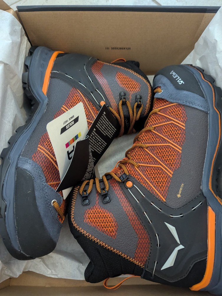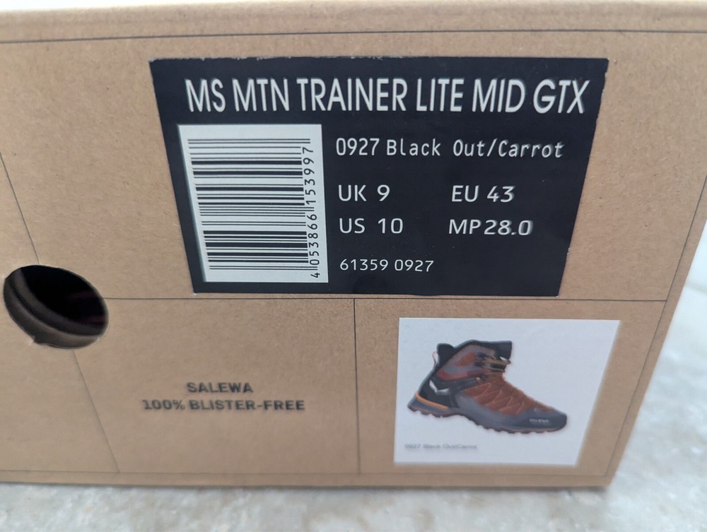 PLEASE READ EVERYTHING BEFORE BIDDING*** INTERNATIONAL DELIVERY FROM THE UNITED STATES TAKES 7-21 BUSINESS DAYS, INSIDE THE U.S. DOMESTIC DELIVERY TAKES 3-5 BUSINESS DAYS, THANKS PLEASE NOTE: THE POSTAL SYSTEM HAS BEEN SLOWER THAN USUAL LATELY. IF YOU ARE AN INTERNATIONAL BUYER, PLEASE TAKE THAT INTO CONSIDERATION BEFORE BUYING. WE HAVE NO CONTROL OVER THE SPEED OF DELIVERY BY THE POSTAL SYSTEM. WE DO OUR BEST TO GET YOUR PACKAGE OUT IN THE MAIL LESS THAN 24 BUSINESS HOURS AFTER YOU PAY FOR IT. SALEWS Men's Mountain Trainer Lite Mid Gore-Tex Trail Hiking Boots Shoes RETAIL $219.95 Color: Black Out / Carrot Size Men's Standard Width US 10 UK 9 EU 43 You'll be ready for hikes across technical terrain with Salewa's MTN Trainer Lite mid hiking boots , crafted in abrasion-resistant materials with waterproof breathable Gore-Tex® protection, a supportive ankle cuff, heel stabilizer and a grippy lugged Pomoca® compound rubber outsole for traction. Gore-Tex® Extended Comfort waterproof breathable membrane offers optimized breathability for higher-intensity use in moderate and warmer conditions Water- and abrasion-resistant textile upper with leather overlays Extended climbing-style lace closure Gusseted tongue helps keep out dirt and debris Padded tongue and collar Protective rubber toe cap Supportive and forgiving ankle cuff Heel stabilizer Breathable fabric lining Removable cushioned footbed Shock-absorbing EVA midsole Grippy, durable Pomoca® compound rubber outsole with deep lugs for traction on a wide range of terrain Made in Vietnam BUYER GUIDELINES: PAYPAL is the only form of payment we accept. · All items you see listed are what we have in stock. Please check back often for different sizes, colors, and styles. · We do not make a profit on shipping & handling charges. We charge you what it costs us to ship the items to you. Please be advised that all S&H charges are made clear to the buyer in the auction description before you bid or use buy it now. If you do not like the S&H charges we have listed, please do not bid. · Item dispatch date is the day you pay or the following working/business day. · For domestic orders (packages going to USA addresses), please allow 3-5 business/working days for delivery. · For international orders (packages going to all non-USA addresses), please allow 7-21 business/working days for delivery. We ask all international buyers to please be patient with the delivery time of their item. There are many obstacles, such as customs control, that your package has to go through to get to you which may delay the time of delivery. · Insurance is required on all international orders (packages going to all non-USA addresses). The cost of insurance is $1.99 and it has already been factored into the shipping & handling price. It is a minimum price to pay for insurance and it is there to insure any problems with delivery of your item. · If you have any problems with your order, please message us through eBay first using the eBay message system and we will get back to you within 24-48 hours. Do not leave negative feedback or bad detailed seller ratings before contacting us to resolve any problems that may arise with your order. We are here to make the customer happy and if you are happy we expect positive feedback and 5 stars in every category of the eBay DSR Ratings when you leave feedback. · We offer combined shipping discounts by the weight of the combined products. for quote please email me the items you interested and I will email you back with the shipping cost quote. · All items sold as is stated in auction description. In the case of seller error, such as a mistake in the listing and/or you were shipped the wrong item, please message us through the eBay message system so we can negotiate a proper refund or exchange. · When dealing with shoes, only USA addresses will receive the actual shoe box that the shoes come in. All other countries will receive only the shoes and whatever other contents were in the shoe box. · Import duties, taxes, and charges are not included in the item price or shipping charges. These charges may be imposed and are the buyer's responsibility. Please check with your country's customs office to determine what these additional costs will be prior to bidding / buying. These charges are normally collected by the delivering freight (shipping) company or when you pick the item up - do not confuse them for additional shipping charges.
