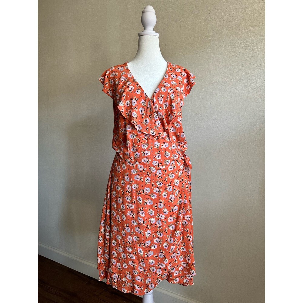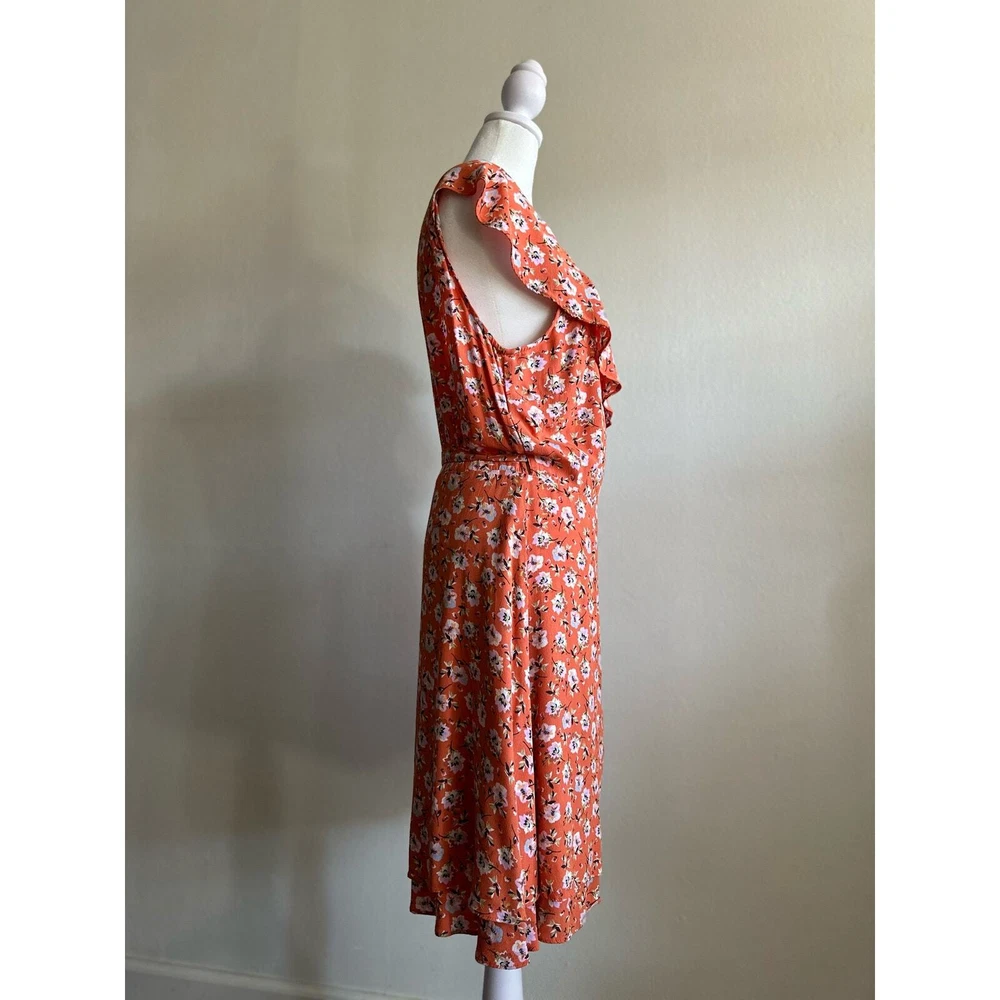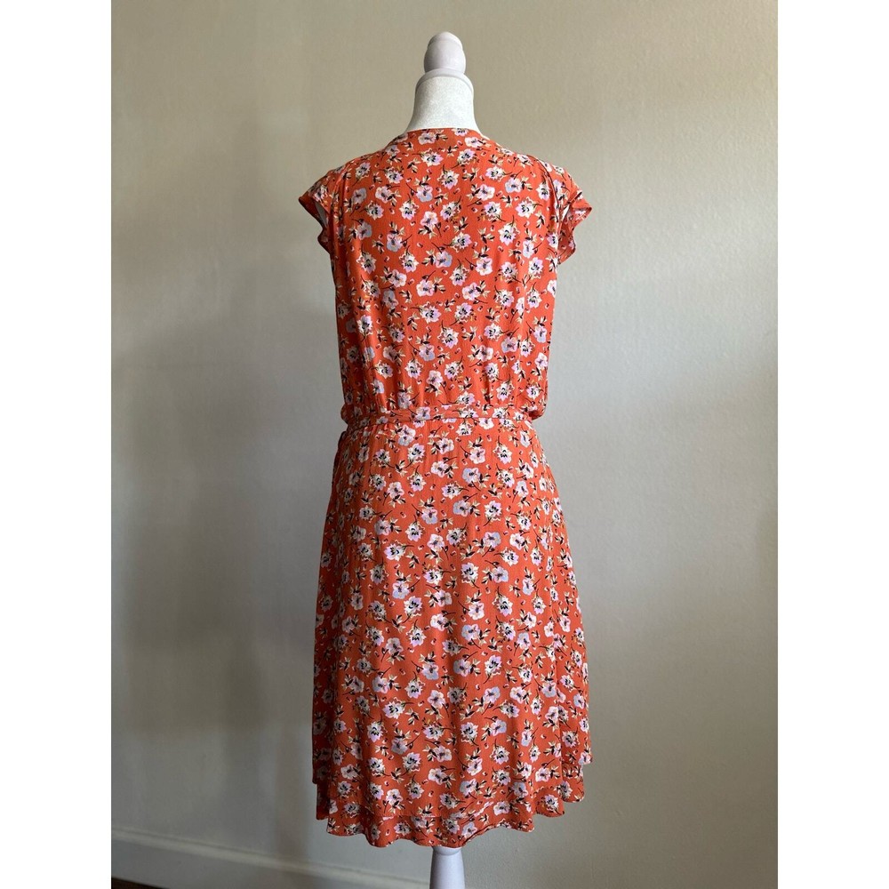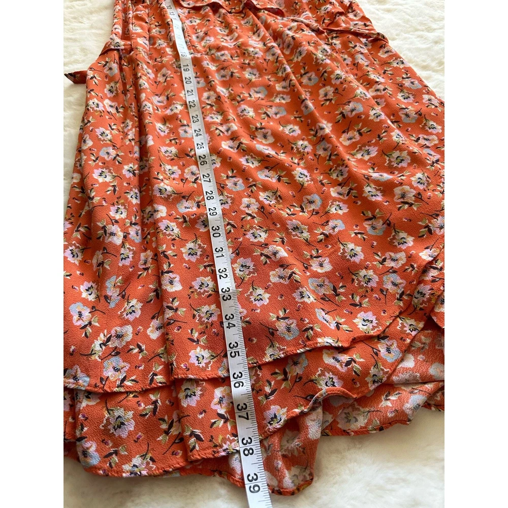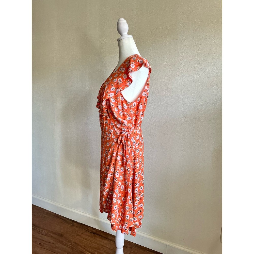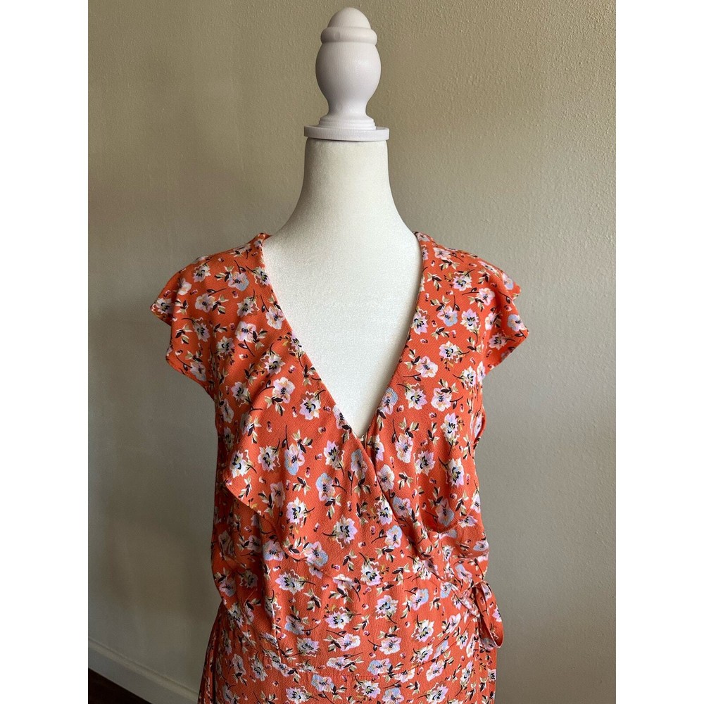 <![CDATA[<div>SANCTUARY Womens Orange Ruffled Side Tie Floral Cap Sleeve V Neck Above The Knee Wrap Dress Size : Medium Condition: Pre-Owned in good condition no major flaws