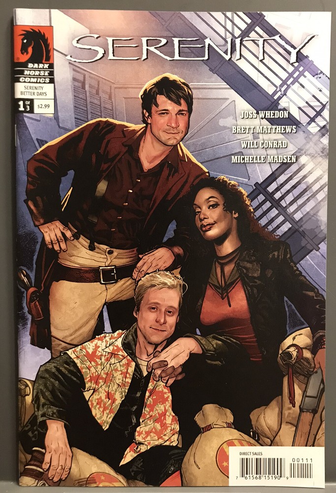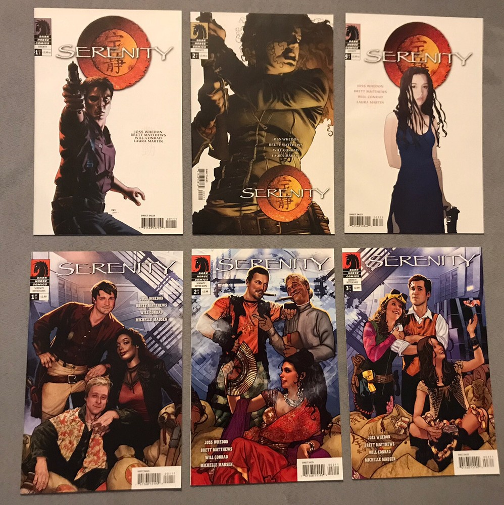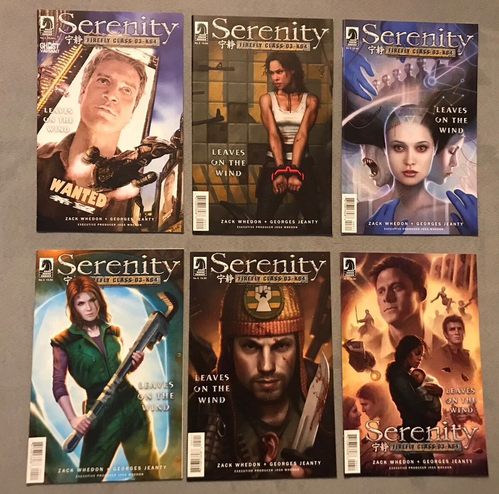 SERENITY #1A 2C 3A (Vol 1, 2005, by Joss Whedon) + BETTER DAYS #1-3 (2008, by Joss Whedon, Adam Hughes covers) + FLOAT OUT One-Shot (2010, by Patton Oswalt, Stockton Variant) + LEAVES ON THE WIND #1-6 (2014, by Zach Whedon, #1 Ghost Variant) + FCBD (Free Comic Book Day) 2016. Dark Horse Comics FIREFLY Condition of all issues ranges from VF+ to NM. Shipped with USPS Priority Mail. All comics from this seller have been carefully stored in a non-smoking, climate-controlled environment. All comics are shipped bagged and boarded in a Gemini Comic Mailer, and YES I combine shipping! See my other listings for more classic Modern Age comics. I am processing a HUGE collection, so message me if you don’t see something specific you’re looking for! **I include insurance for all orders over $50 USD**