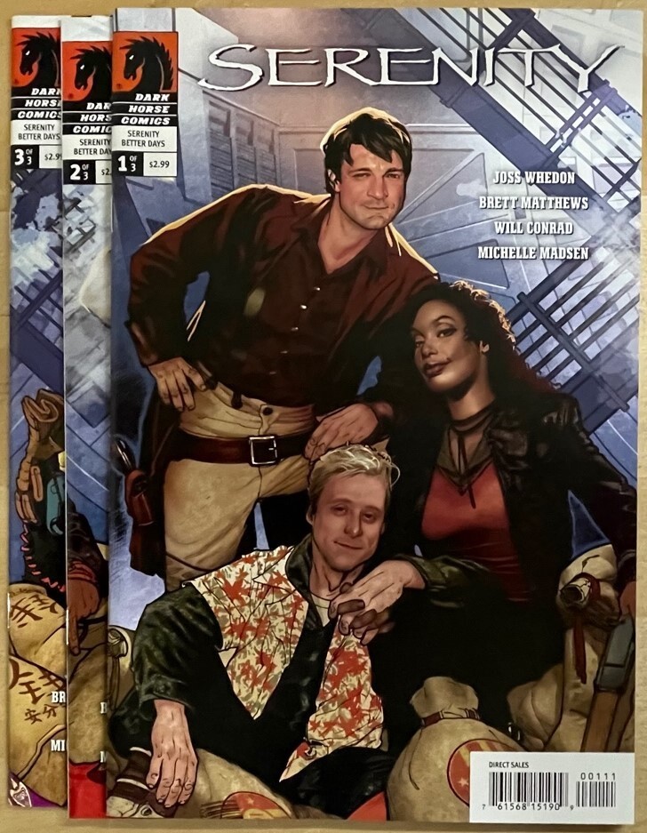 FOR SALE : SERENITY BETTER DAYS #1-3 by Dark Horse Comics (2008). Thanks for shopping with Comics Conspiracy! All comic books are available for combined shipping, total is calculated at checkout. All modern comics are Very Fine/Near Mint unless otherwise noted. For older comics, please see the pictures for condition.