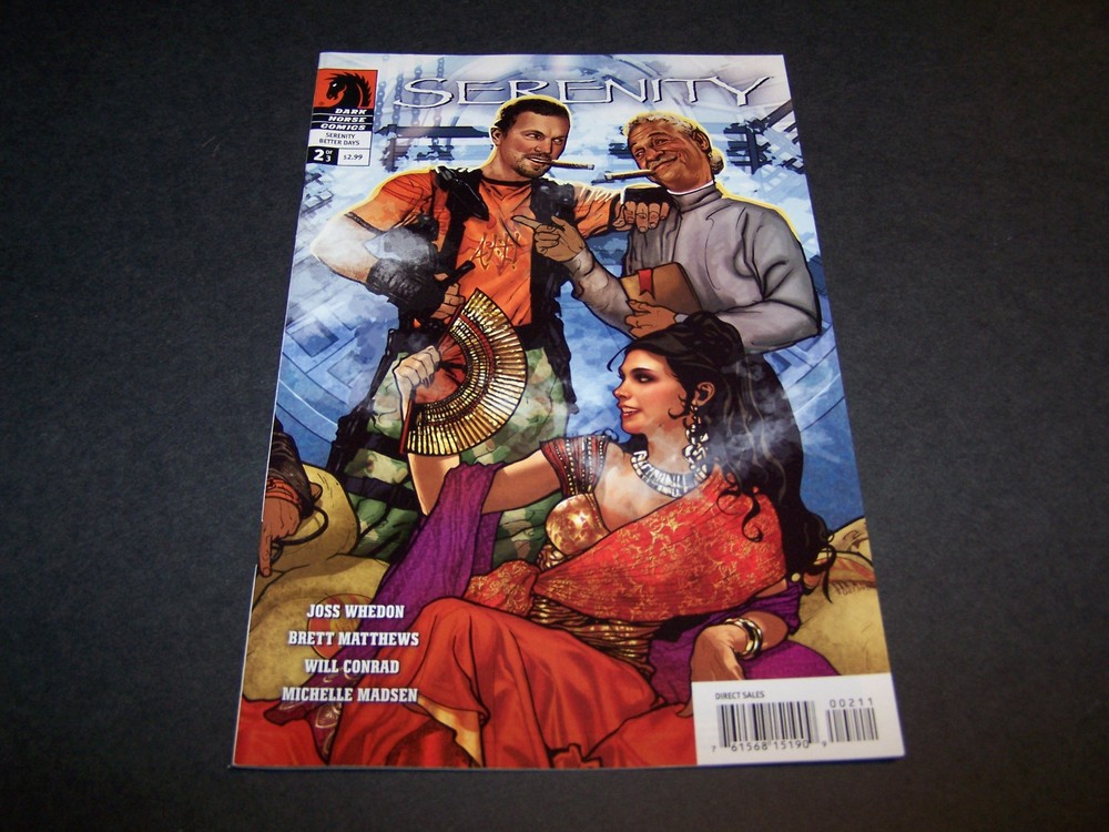 AUCTION IS FOR A DARK HORSE COMICS, SERENITY BETTER DAYS #2 ! ALL COMICS ARE BAGGED AND BOARDED, AND ARE IN VERY FINE PLUS CONDITION OR BETTER. PLEASE SEE PICTURE FOR MORE DETAILS. ALL AUCTION ITEMS THAT I OFFER COME FROM A SMOKE FREE ENVIRONMENT. I WILL COMBINE SHIPPING ON MULTIPLE AUCTION WINS. If you have any questions on this, don't hesitate to email me. See picture for more details. I will ONLY ship my comics using PRIORITY MAIL. International shipping will be more. Methods of Payment is Paypal, but if an alternate payment method is needed, please contact me for options. Auction Terms 1) Winning bidder agrees to pay-in-full for the item within 5 days of END OF AUCTION NOTICE. Shipping & Handling Rates are NOT negotiable. Please paypal only once on multiple item wins. Please avoid PayPal-ing for each item separately!!! 1 All prices are as stated in U.S. Funds. 2 All comics are sent PRIORITY MAIL and come with delivery confirmation. 3 International packages are sent PRIORITY MAIL INTERNATIONAL, unless size or weight determines otherwise. ATTENTION INTERNATIONAL CUSTOMERS: Import duties, taxes and charges are not included in the item price or shipping charges. These charges are the buyer's responsibility. Please check with your country's customs office to determine what these additional costs will be prior to bidding/buying. These charges are normally collected by the delivering freight (shipping) company or when you pick the item up – do not confuse them for additional shipping charges. We do not mark merchandise values below value or mark items as "gifts" - US and International government regulations prohibit such behavior. Once you receive your item, and you are happy with it, please leave POSITIVE FEEDBACK for me. Only after I have received POSITIVE FEEDBACK from you, will I leave the appropriate feedback for you. Failure to pay for auction items after 10 days is subject to eBay's non-paying bidder program (including my requesting a final value fee credit, which will give you a strike against your eBay account. Three strikes like this from eBay and they suspend your account). I set up at, or attend, 90% of the major shows across the country including Wizard World, Motor City, Baltimore, Pittsburgh, as well as many others, and I personally oversee the signing of each of my comics that I sell. I guarantee the autographs or sketches sold to be 100% percent authentic. If it is ever proven that the signature on these books is not who I say it is, then I will replace the item, or refund up to 200% of the purchase price. Thank you for understanding these terms, and I reserve the right to change or amend these terms as situations require. As a final note, if there is anything within my auction that you have issues with, then by all means, please exercise your right to NOT BID on my auction items. However, if you look at my feedback you will see that the saying is true..."you get what you pay for." and in my case you are paying for excellent service and quality items. Thank you. On Aug-26-07 at 23:46:39 PDT, seller added the following information: theohiostateguy store