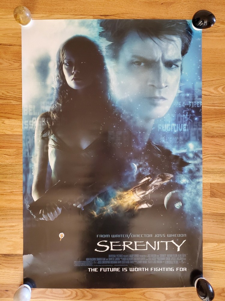Serenity Movie Poster 2005 JOSS WHEDON!!! PROMO ONLY!!! SIZE: 27x40 This item has never been hung or displayed. There is a couple small tears in the poster (bottom left), some very small wrinkles, and small hole punched near the bottom as this poster was for promotional use only. Please see photos for condition! We ship all posters in durable shipping tubes and can combine shipping on like items when possible! We ship international through THE GLOBAL SHIPPING PROGRAM! We strive to be our best! If you experience any problems with your purchase, please contact us right away!