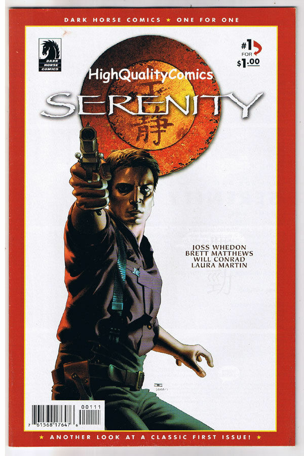 SERENITY ONE for One, Joss Whedon, 2010, NM-, more Sci-Fi in store, Firefly SERENITY : ONE for One...{S t o c kP h o to}... Name of Comic(s)/Title?: SERENITY : ONE for One... Publisher: Dark Horse Comics... Art by/Featuring/Stories?: Featuring an issue of the SERENITY comic...Artist(s): Will Conrad...Writer(s): Josh Whedon, Brett Matthewsi...Front Cover: ?...Rated PG13+ to mature readers...Story ; "?"... Grade of item? : This issue is in NEAR MINT- (unread) condition... Created when? : Made in 2010... Front Cover description : As new, with very light handling wear and/or printers wear/blemish... Back Cover description : As new... Page quality description : Brand new... Tape or writing?: No... How are staples?: Staples are secure... Flat & supple : Yes... Don't get caught napping...Will come bagged & boarded... ...See more SCI-FI, SERENITY, Josh Whedon, & MOVIE/TV items in our store. Be sure to check out all of our current on-going auctions! Lots of great product at affordable prices! Bookmark our listings with (control + D). Lots more coming in the next few weeks... Check out the scan(s). If you like this? Our store name is HighQualityComics...aka HQComics... We have been doing mail-order since 1988. We guarantee Absolute Satisfaction on All Orders! Shipping in a box. Combine auctions to save on postage. INTERNATIONAL CUSTOMERS : Email us for international shipping rates & acceptable ways to pay. INTERNATIONAL CUSTOMERS : Email us for acceptable ways to pay and shipping options, before you place an order. Thanks! This listing created with GLETech Multiple Selling Channel tools.