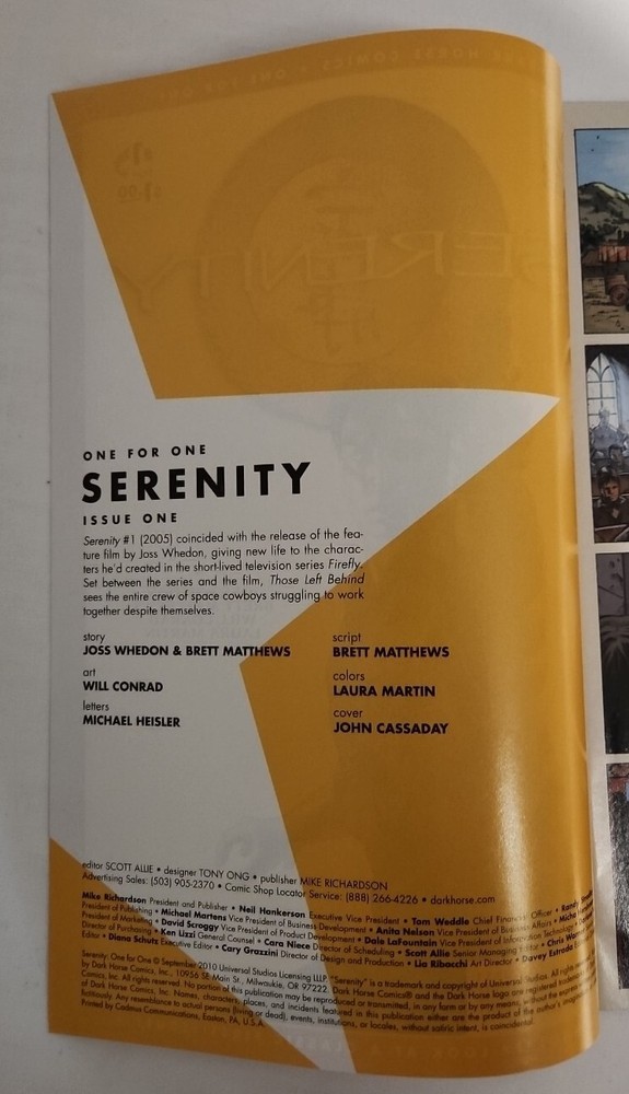 Own a piece of the action-packed sci-fi adventure with SERENITY ONE for One comic book by Joss Whedon. This 2010 publication features the iconic character Firefly and is in near mint condition. Dive into the world of US comics and add this Dark Horse Comics series title to your collection. The main character SERENITY will take you on a thrilling ride through the galaxy. See more info below and discover more sci-fi gems in our store.