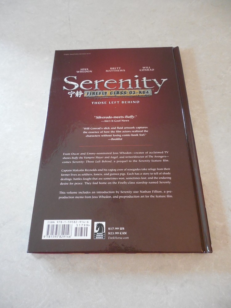 SERENITY FIREFLY CLASS 03-K64, VOLUME 1: THOSE LEFT BEHIND by JOSS WHEDON, BRETT MATTHEWS, WILL CONRAD, DARK HORSE COMICS, SECOND EDITION, 2012, HARDCOVER! We Have Many Similar Items Listed! Combine Lots to Save on Shipping! The Item Pictured is the Item You Will Receive! Grading Just a few words on my grading - I consider myself conservative when it comes to grading but should you disagree I have a Return For Any Reason Policy! Return Policy If you don't like your item for any reason you can return it within 30 days of receipt. No questions asked. I ask that you pay the return shipping because I describe the items in great detail. I also require that you email me in advance of any return. Shipping Information Item will be shipped via USPS and will be packaged securely. Combine lots to save on shipping . I have many similar items listed!