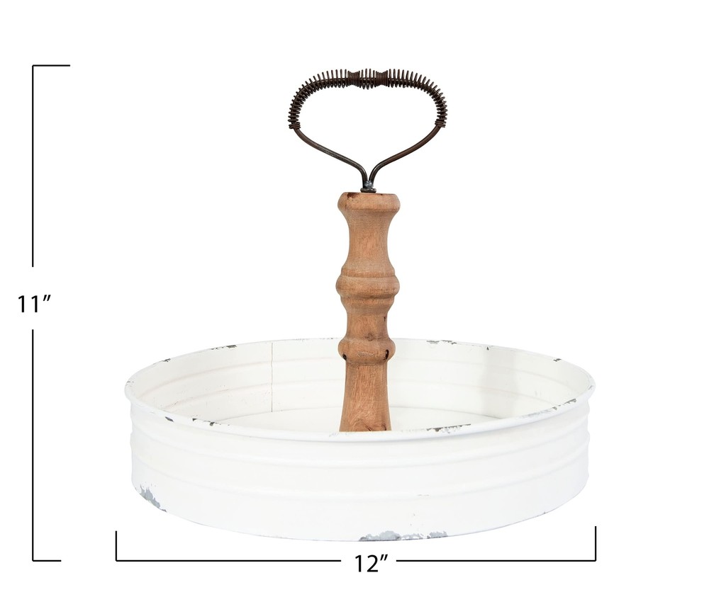 Contact Us Add to Favorite Welcome to our store Free Shipping 30 Days Return eBay Money Back Guarantee Secure Shopping Creative Co-Op Round Metal & Wood Tray with Handle ABOUT THE PRODUCT Use for carrying drinks Fill center with decorative objects Use in the center of the table with salt, pepper and other condiments inside 12"L x 12"W x 11"H (From the manufacturer) Product Description Creative Co-Op Round Metal & Wood Tray with Handle This single tin tray is just what is needed. Easily serve your guests beverages with the handle, and feel confident leaving it on display throughout your festivity. When it's not being used, this tray is perfect for showing off seasonal accessories in the home. Picture this tray full of walnuts, pecans and almonds. Place the nutcracker inside or hanging on the handle. On the other end of the spectrum, use it for an easy place to store your nail polishes and be able to carry them from room to room. For more information about the product, please visit the manufacturer's website. TERMS OF SALE Cancellation Per eBay policy regarding cancellation, we are required to accept a cancellation within 1 (one) hour of the time you placed your order. Please understand, that once we process your order, it is very difficult to reverse it, and impossible once we shipped the item. If you need to cancel after your hour expires, we will make every effort, but if we can't catch it before the item ships, you will have to follow the steps laid out in the return policy, once the item arrives. Shipping We offer free shipping with standard shipping. Timeline of delivery time is 4-8 business days including the handling time. We do not offer combine shipping service. Please note, most of our products ship directly from our different suppliers across the United States. Please make sure, to provide the correct shipping address during checkout, as the address cannot be changed after checkout. Double check it to be sure. We have no way of knowing in advance, if the address is incorrect. So we will not take responsibility for any incorrect or undeliverable addresses. Return Policy Y ou have 30 days from the date you received your purchase, to return it for refund, subject to the following conditions: "The date you received your purchase" means, specifically, the date the carrier has on record that they delivered the package to your house. If you are not certain of this date, check online with the tracking number, to see what date is on record for the delivery. The item is considered "returned" on the date the carrier has on record, that they delivered the item back to our warehouse/supplier. We will not allow a refund unless the date occurs before the 30 days have elapsed, so it is important that you act promptly, or else we cannot guarantee the refund. In this case, we may refuse the returned package. ALL returns, regardless of reason, must be in the ORIGINAL packaging, UNLESS the packaging was so badly damaged in shipment that they are no longer usable for that purpose. IF THIS is the case with your shipment, we will need PHOTOS of the damaged package. You should take these photos from several different angles, BEFORE you try to open it. Return unsatisfactory products If you are not satisfied with your purchase or if you just changed your mind, you can return the product, and you must pay for return shipping, and we will also charge back the original shipping that we already paid when we shipped your item. And you must return the item in new or unused, unopened, unmarked, unwashed or original condition with all original material included with the shipment. All returns must be requested through eBay, for return authorization and shipping address. Please note, never send a return without opening a return request , as the return address is different from the original shipping facility address. Undeliverable package The honest truth is that we have no way of knowing if your address is correct. Only you can give us your correct address. So if your address is wrong, or there is no safe place available at your shipping address when the courier tries to deliver your package, we will not accept responsibility for that, so MAKE SURE your address info is correct. Otherwise, we will charge you the original shipping that we paid for your shipment. Feedback from you Your feedback is very important to us. As long as you are happy with your purchase, we would be grateful if you could please leave positive feedback for us. If there is a problem or you are not happy with your purchase, please let us know first and give us the opportunity to resolve it for you. About us Welcome to our store, We sell a wide variety of products. We are very selective with the products we offer for sale. We only sell TOP RATED products that have received the best feedback from other consumers, at least 4 out of 5 stars. We work with the largest suppliers of products to bring you only the best items. We are committed to providing each customer with the highest standard of customer service. Payment Options Copyright Β©2018, All rights reserved. Listed by Sku Fetch