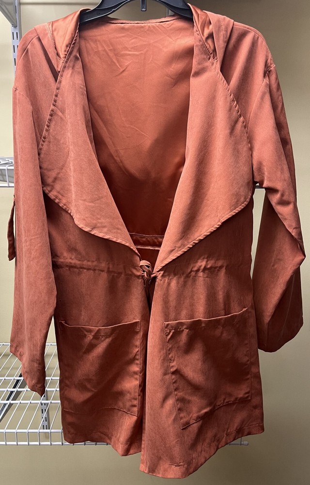 SHEIN Orange Roll Tab Sleeve Cinch Waist Long Jacket Women's Size Large US Size 8/10 New without Tags...