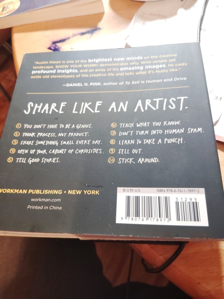 This book titled "Show Your Work!: 10 Ways to Share Your Creativity and Get Discovered" by Austin Kleon is a valuable addition to any young adult, ages 9-12, or adult's library. With 224 pages, this trade paperback book covers topics such as business communication, personal success, entrepreneurship, creativity, and graphic arts. The book is illustrated and comes in its original English language. It was published in 2014 by Workman Publishing Company, Incorporated. This item weighs 10.1 Oz and has a unit quantity of 1. It is not personalized, signed, or ex libris. It is a first edition and belongs to the Austin Kleon Ser. book series.