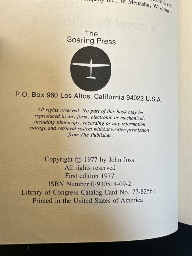 Explore the captivating world of gliders with the novel "Sierra Sierra" by John Joss. This hardcover first edition is a treasure for adults who enjoy reading about the magic of soaring through air currents. The book is signed by the author and personalized for a truly unique experience. With 235 pages, this vintage book published by The Soaring Press is a must-have for any book collector. The dust jacket adds a touch of elegance to the already stunning design. The book's features include a clear reference to the topic of gliders, making it an excellent addition to any aviation enthusiast's collection.