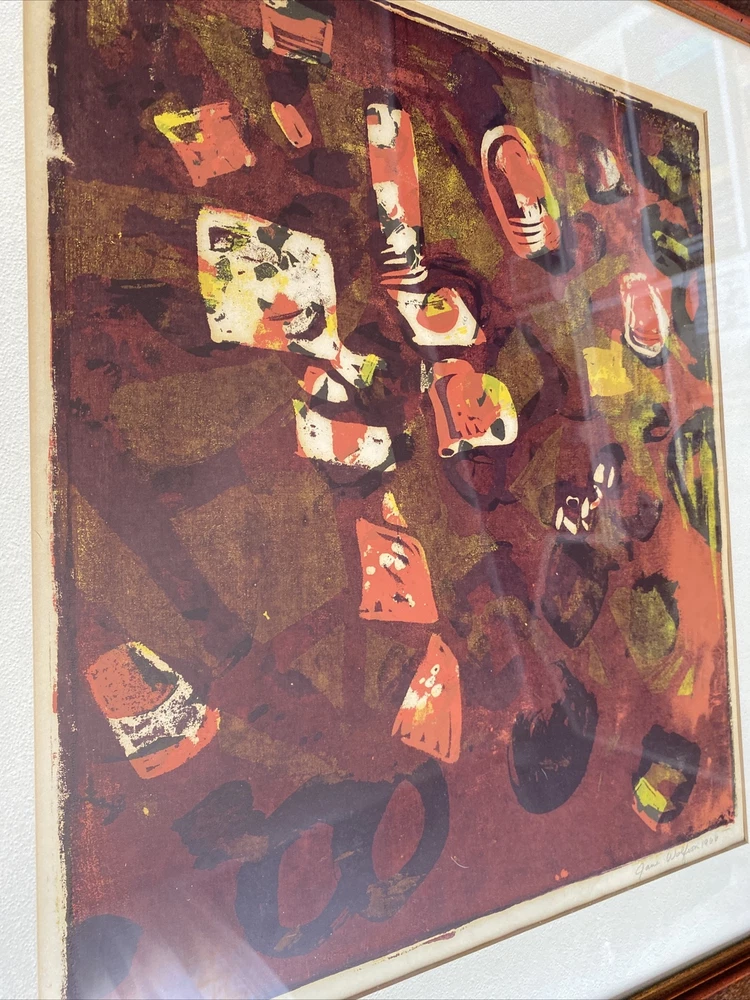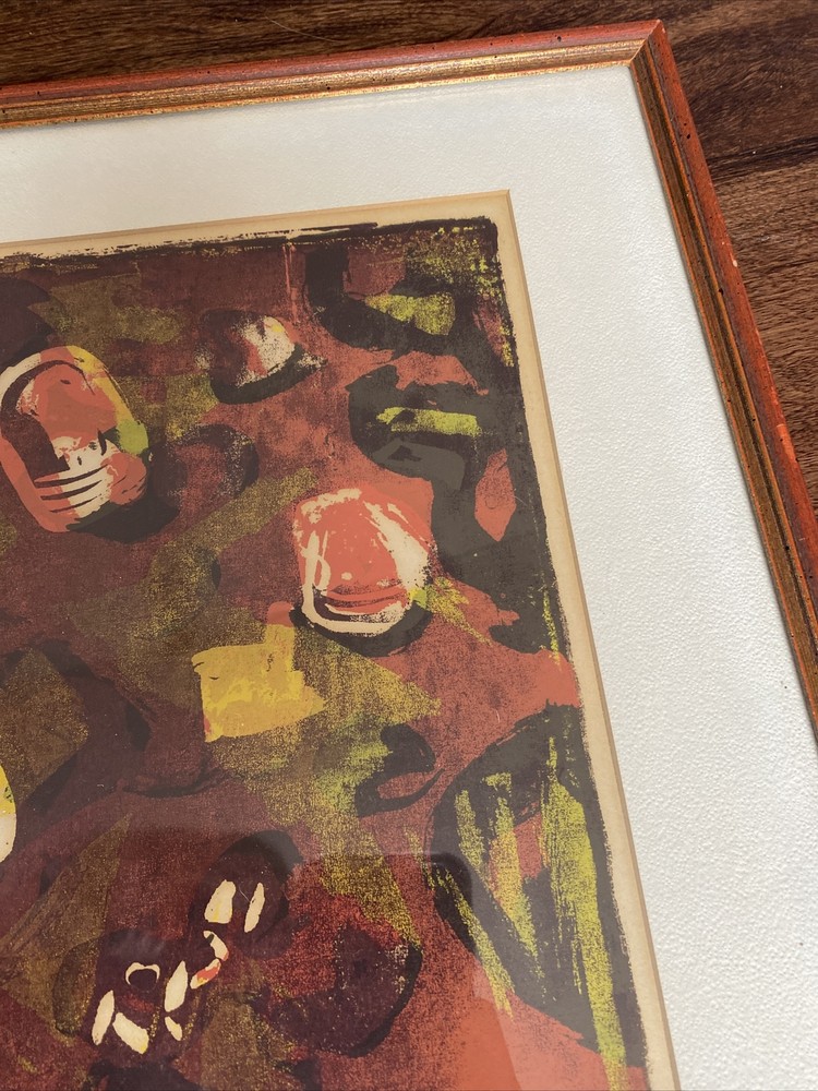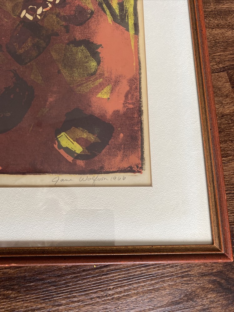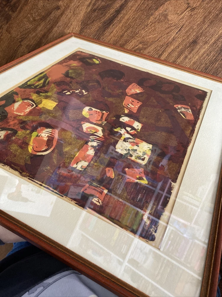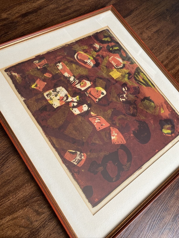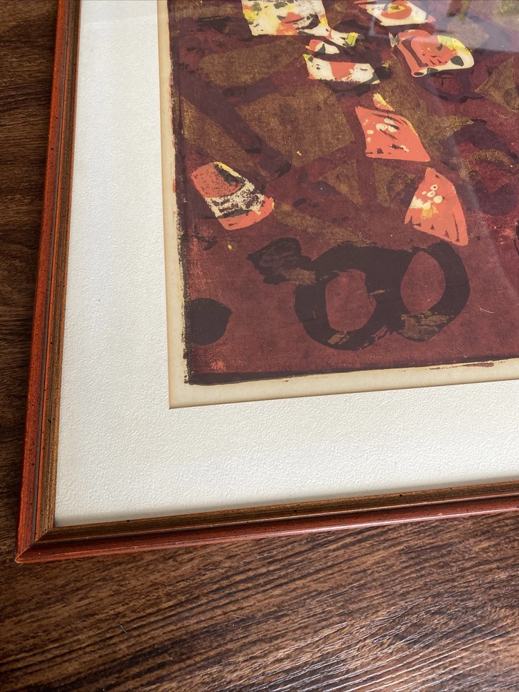 Vintage Mid-Century Modern Abstract Painting Signed Original Red Tones Hard to find only one like it! Hand painted and signed by the artist. With gorgeous Reds, browns, oranges, yellows. Abstract expressionism vintage 1960s signed by artist in original matted frame. Frame is in good condition with minimal signs of wear to frame and glass. Small tear or two in the back from taking a sticker off on the back paper of the frame but it doesn’t affect this beauty at all! Frame is in solid condition and very nice. Fast and free shipping with care!