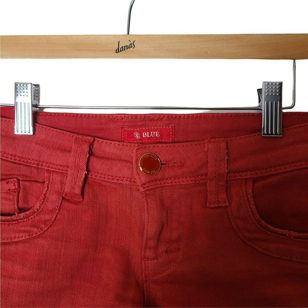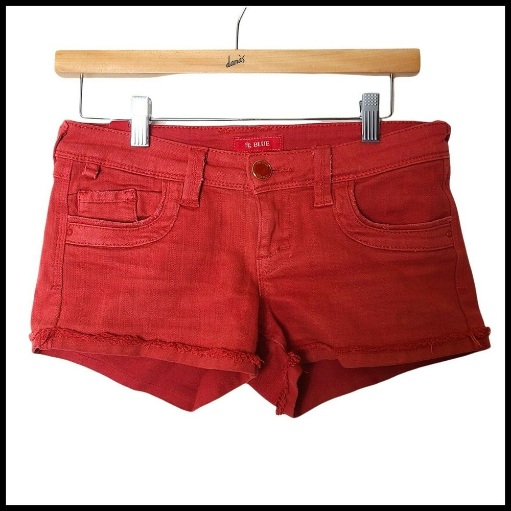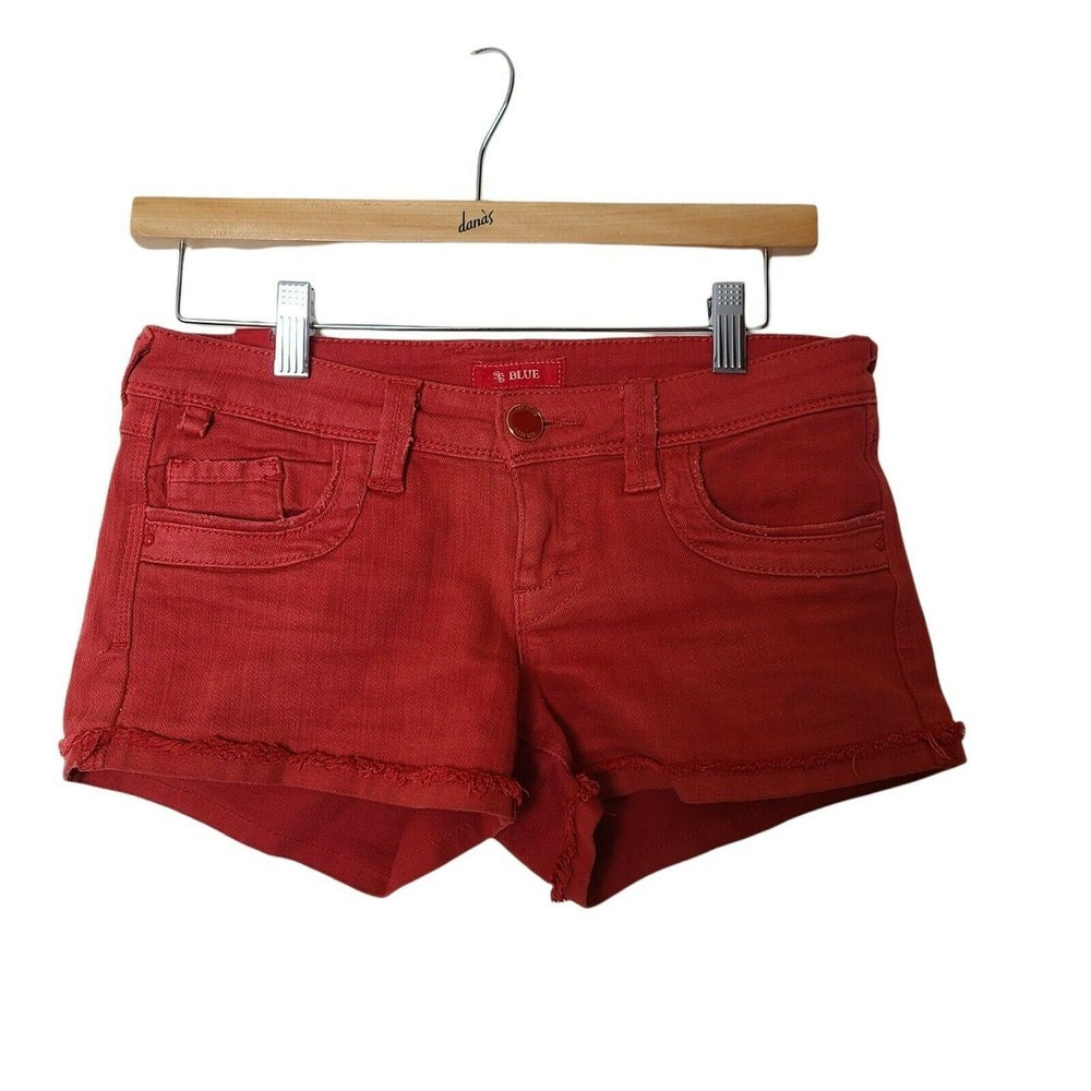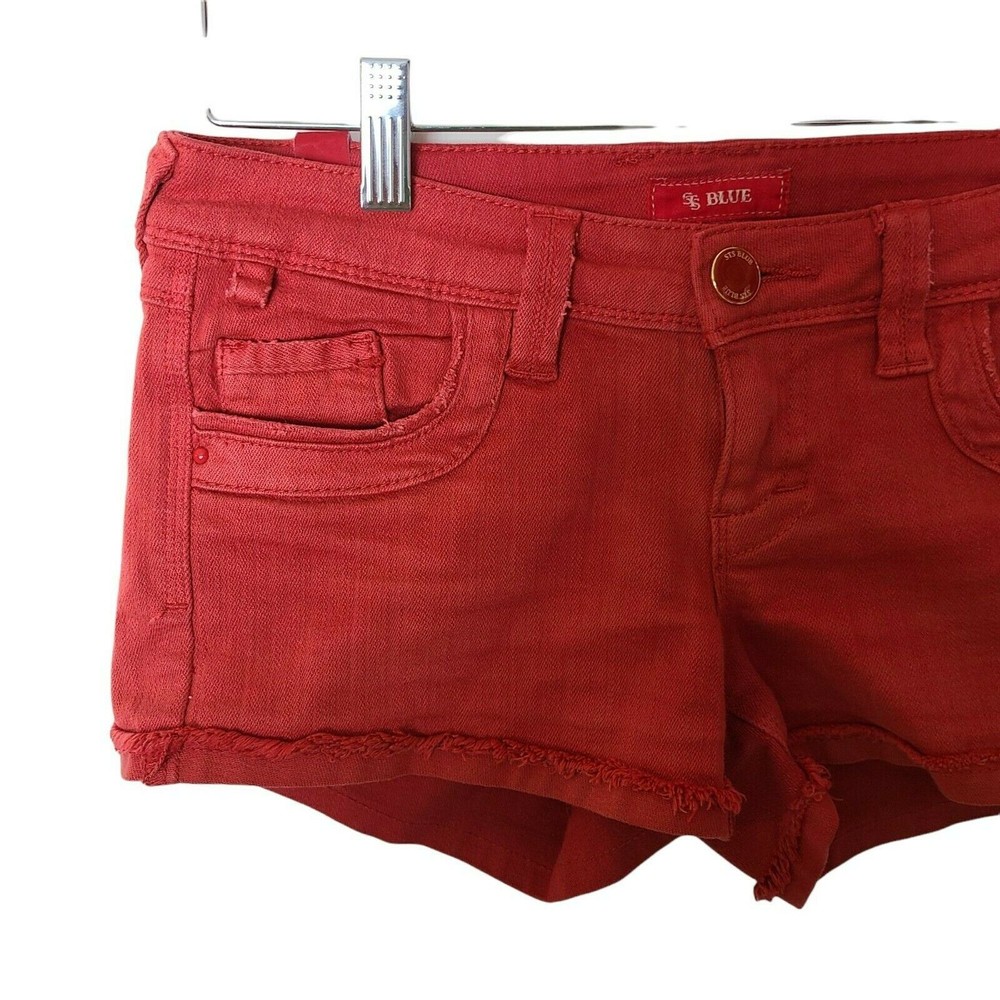STS Blue Denim Shorts Orange Red size 24 Mid Rise 5 Pockets Size: Womens 24 Measurements: Waist 15 in / 38 cm Inseam 3 in / 8 cm Front rise 7 in / 18 cm Back rise 12 in / 30 cm Condition: Pre-Owned Good Q1