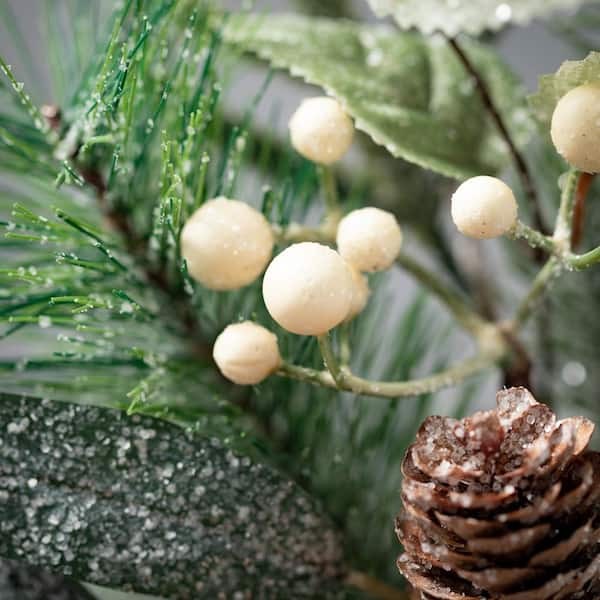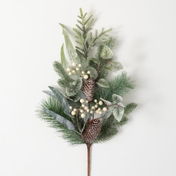 Decorate your home with this classic Christmas berry and pinecone spray. With fresh, green pine accented with white berries, this spray will be the perfect final touch to any holiday arrangement. Over the last 55 years, Sullivans has become an industry leader in home decorations. Our brand is rooted in tradition while incorporating modernized trends to keep your home looking up to date with timeless style. Here at Sullivans, we pride ourselves on creating product designs focused on quality and value, ensuring that our customers have access to beautiful products at reasonable price points.
