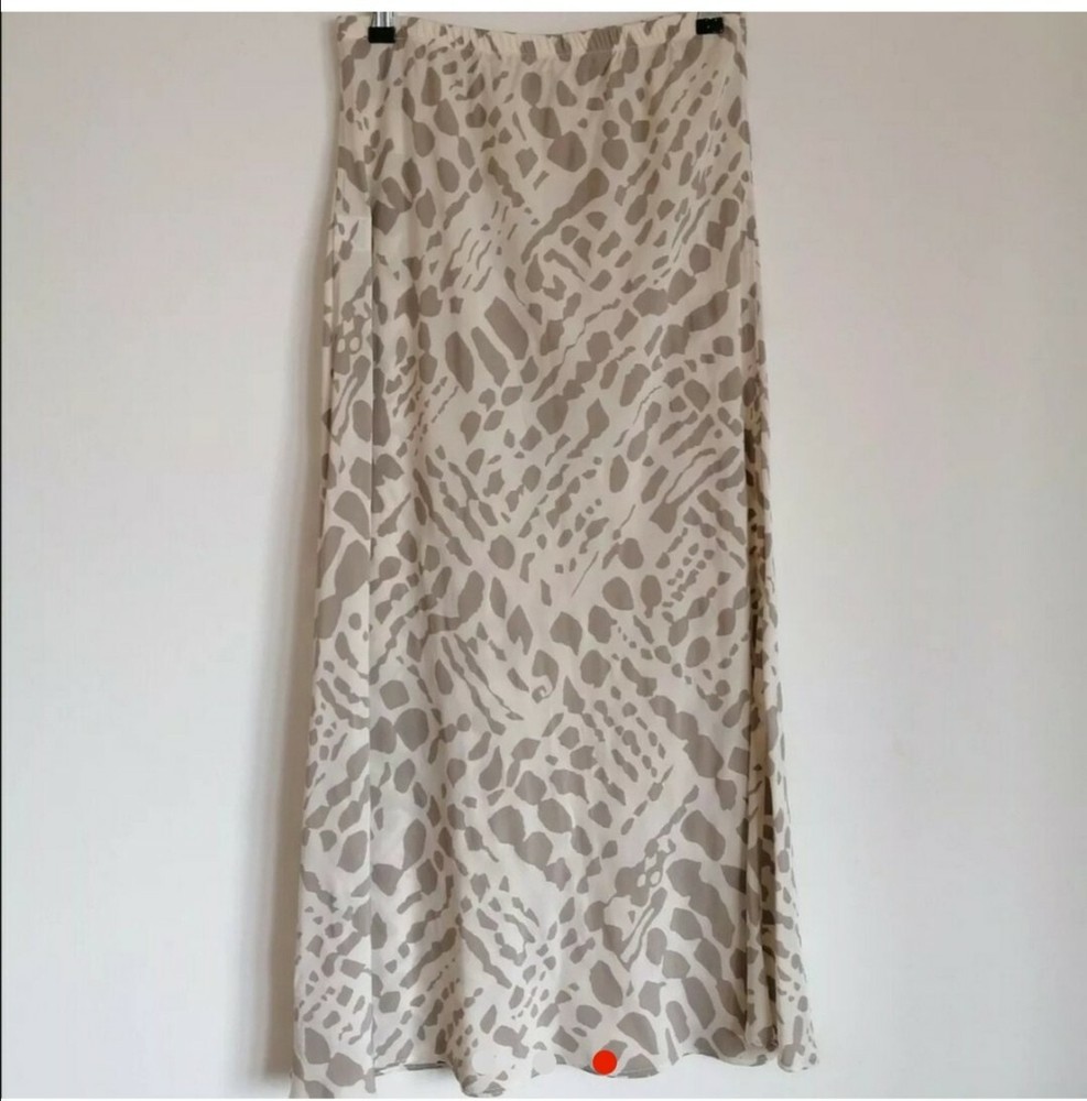 Barely worn beautiful and unusual co-ord top and skirt in a grey and white giraph print. In brilliant condition . Perfect for a formal occasion or eye catching chic day to day wear. This is a relaxed fit style outfit and the skirt has an elastic waist. The arm length is adjustable. Both the skirt and top would need to be worn with nude underwear or slips. The outfit is labeled a medium and would fit a size 12. Skirt waist to hem - 36.2'' Top shoulder to hem - 32.2