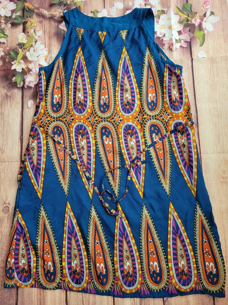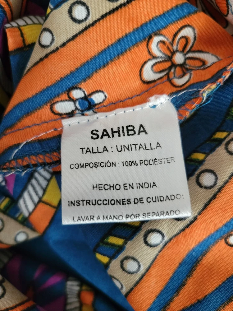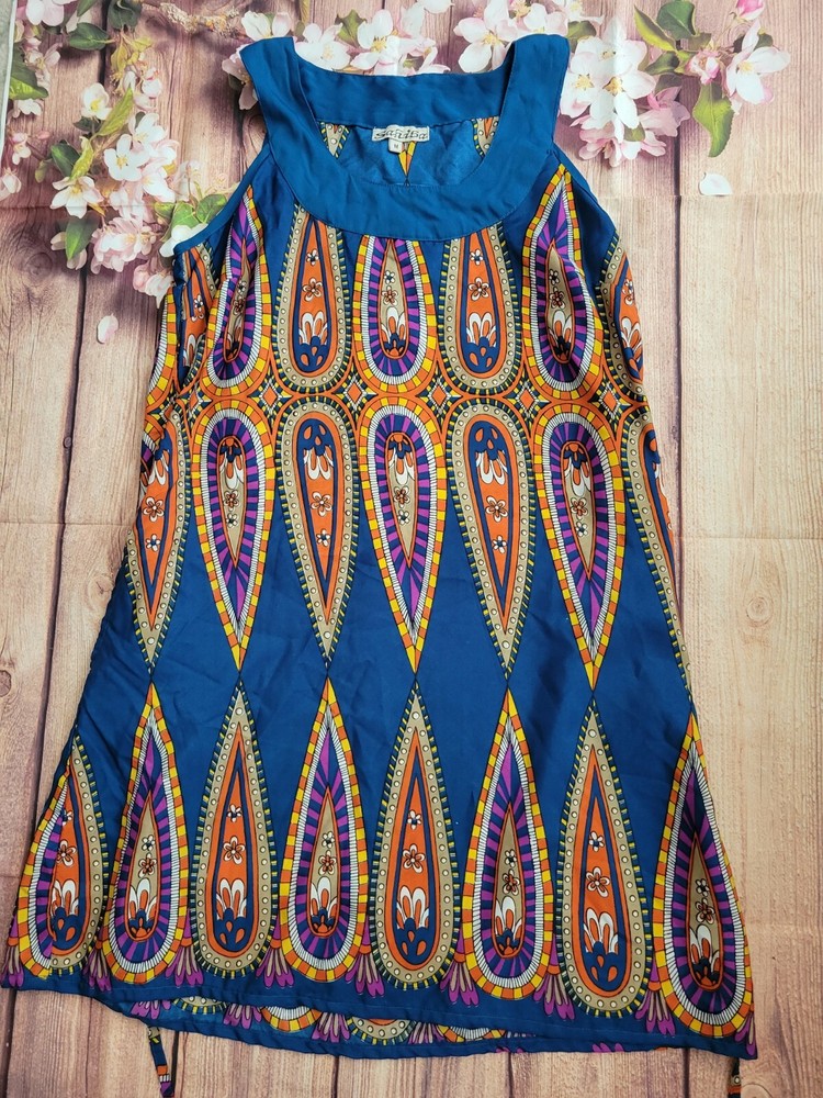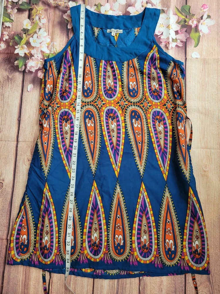 Sahiba Blue Orange Summer dress Size Medium. See pictures for condition and measurements. Stain on back. Polyester...