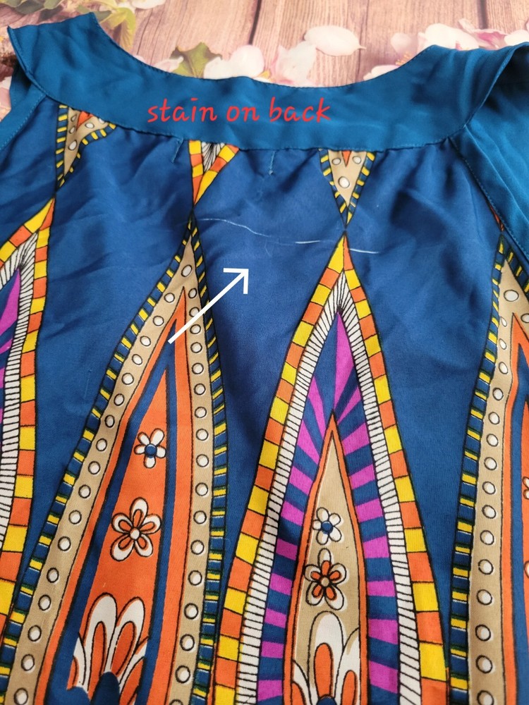 Sahiba Blue Orange Summer dress Size Medium. See pictures for condition and measurements. Stain on back. Polyester