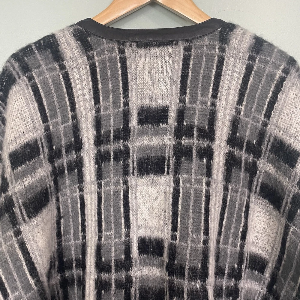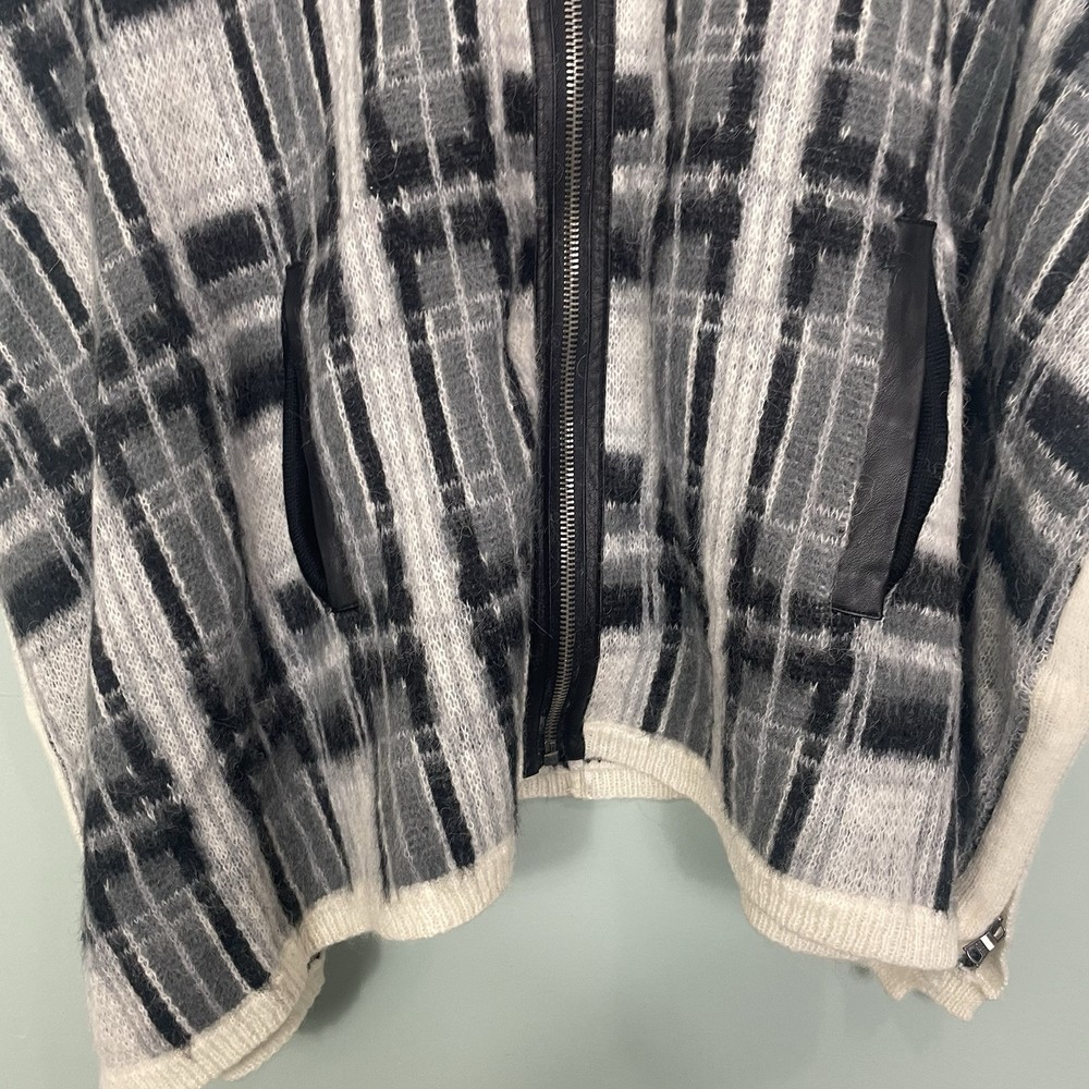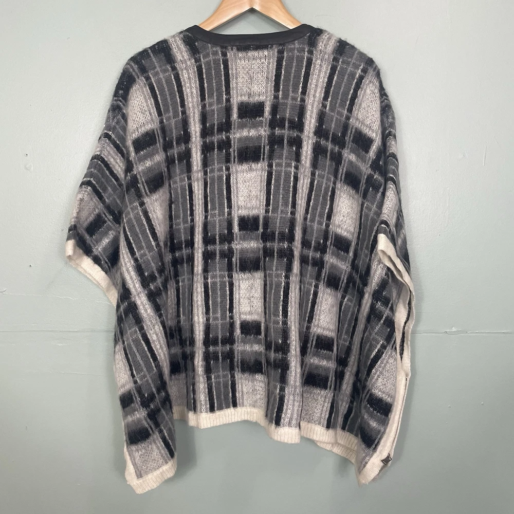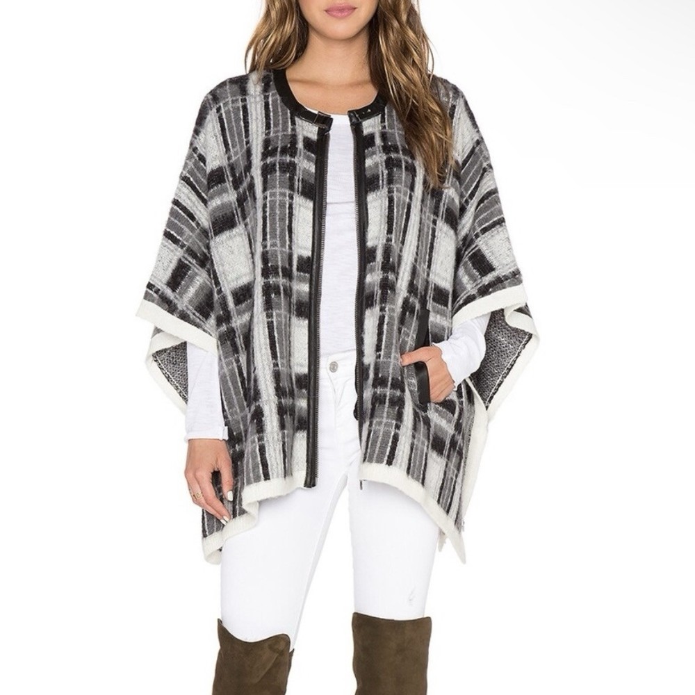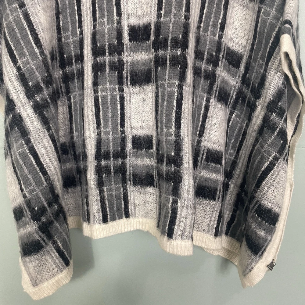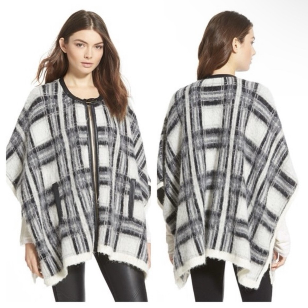 New with tag no flaws Pattern of monochromatic plaid enchants a cozy cape Front slash pockets Jewel neck Poncho sleeve Buckle tab throat latch 35% acrylic, 29% nylon, 24% wool, 12% alpaca Oversize fit