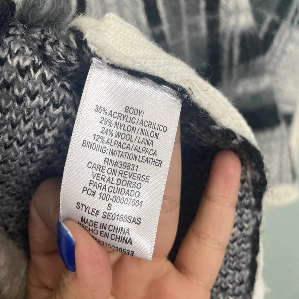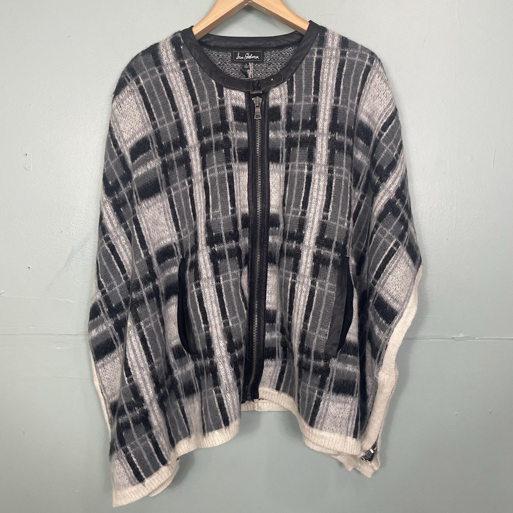 New with tag no flaws Pattern of monochromatic plaid enchants a cozy cape Front slash pockets Jewel neck Poncho sleeve Buckle tab throat latch 35% acrylic, 29% nylon, 24% wool, 12% alpaca Oversize fit...